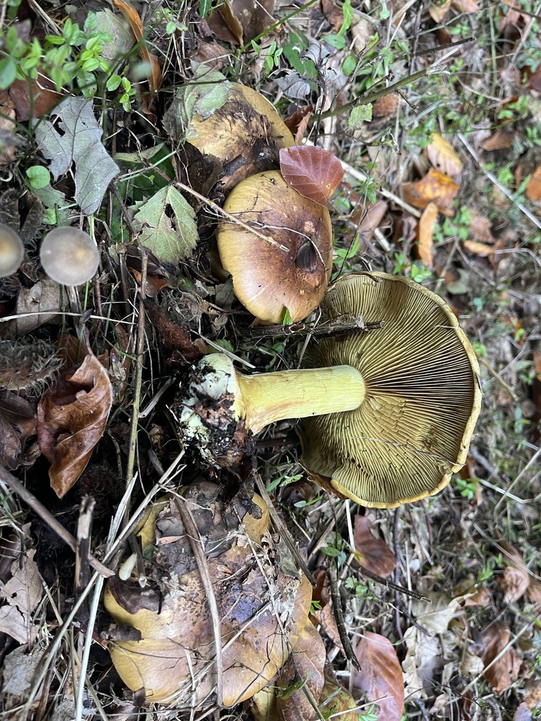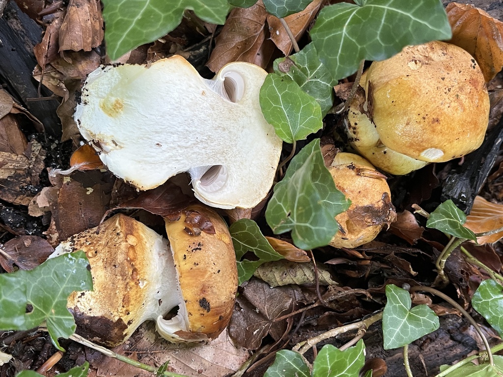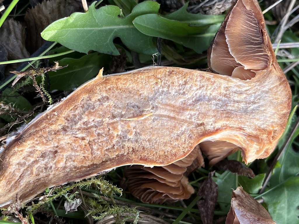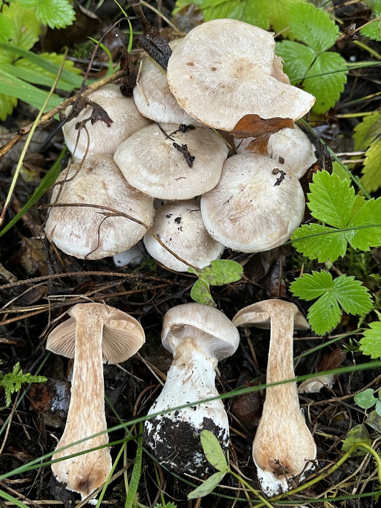 letzte Woche habe ich auf einer Feierabendtour mit dem Fahrrad völlig überraschenderweise 3 Klumpfüße im Hauswald gefunden. Eigentlich wollte ich nur schauen, ob die Tigerritterlinge an der bekannten Fundstelle FK gebildet haben.