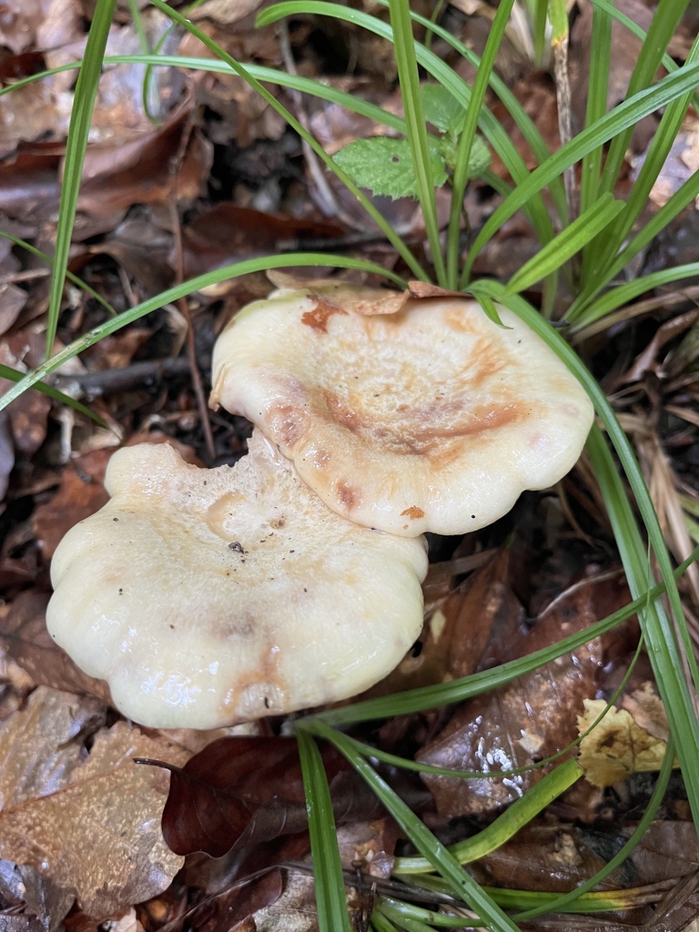 Allerdings waren in diesem Wald schon deutlich mehr Mykorrhizapilze aktiv (die ich nicht alle zeigen werde). Ein Highlight waren für mich diese violett milchenden Milchlinge, die ich nach dem Schlüssel im Winkler/Keller als Lactarius flavidus benannt habe (Bäume in der Nähe waren Hainbuche, Buche, Esche sowie Ulme).