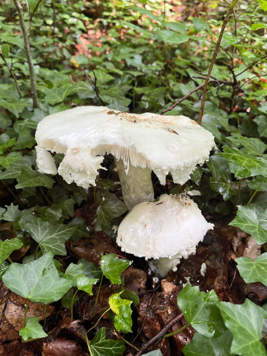 Bei folgenden Exemplaren bin ich mir nicht sicher, ob es sich um die weiße Variante von Amanita phalloides oder um Amanita virosa handelt: