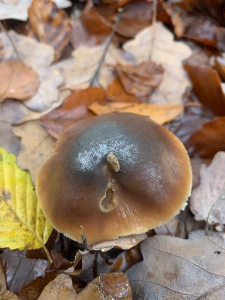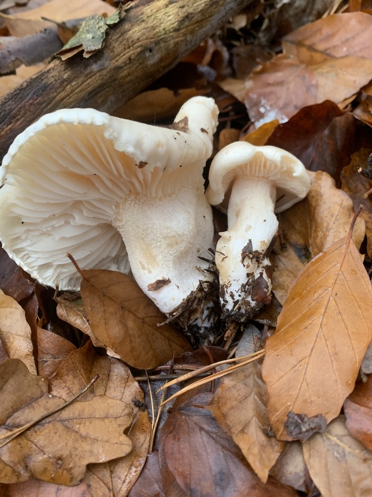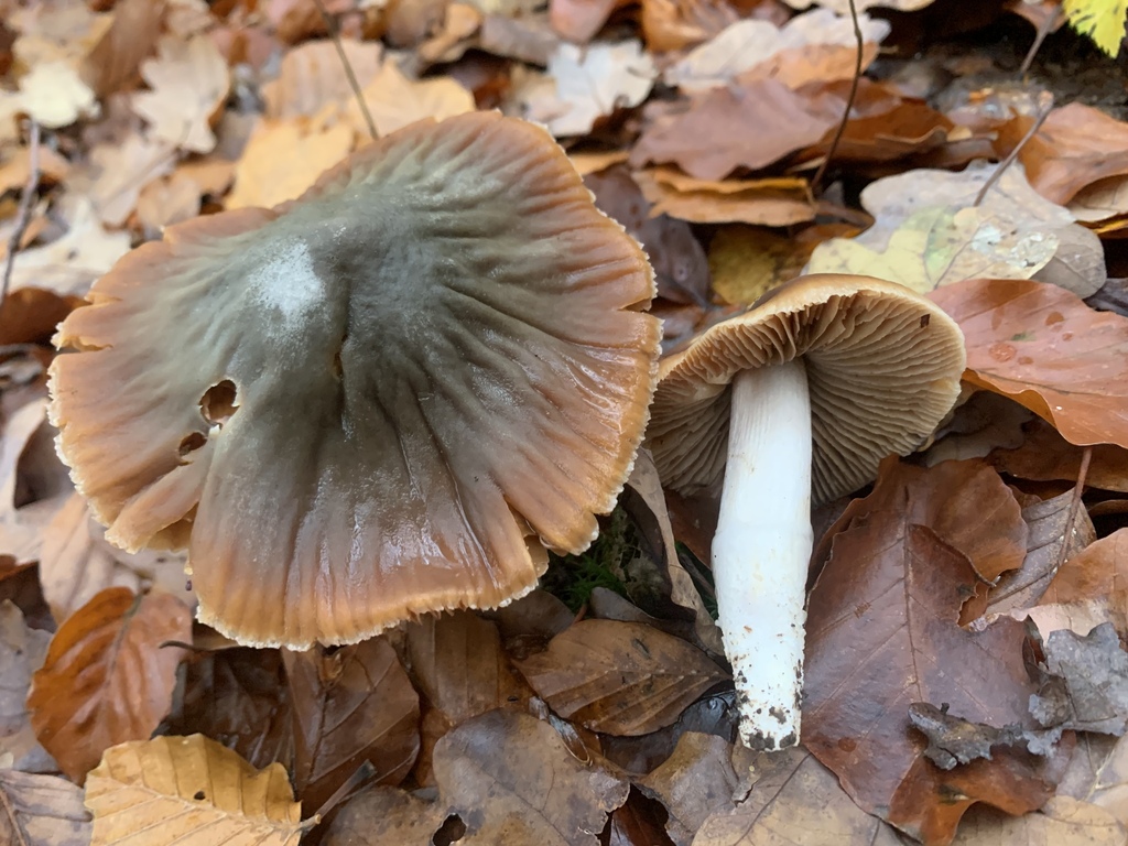 Fund Nr. 2 wächst an einer durch Windbruch umgestürzten Fraxinus excelsior. Hier kann man in jedem Fall kurze Stiele erkennen. Es sprießen unzählige Fruchtkörper auf kleiner Fläche aus dem Holz. Direkt nebenan wuchsen an der gleichen Esche Samtfußrüblinge.