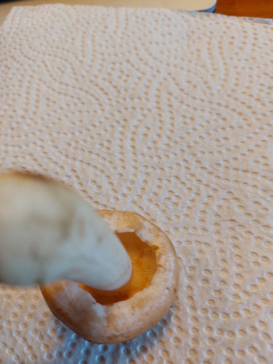 Hi beli 1, die Lamellen sind weiß, das Sporenpulver eher orange-braun.