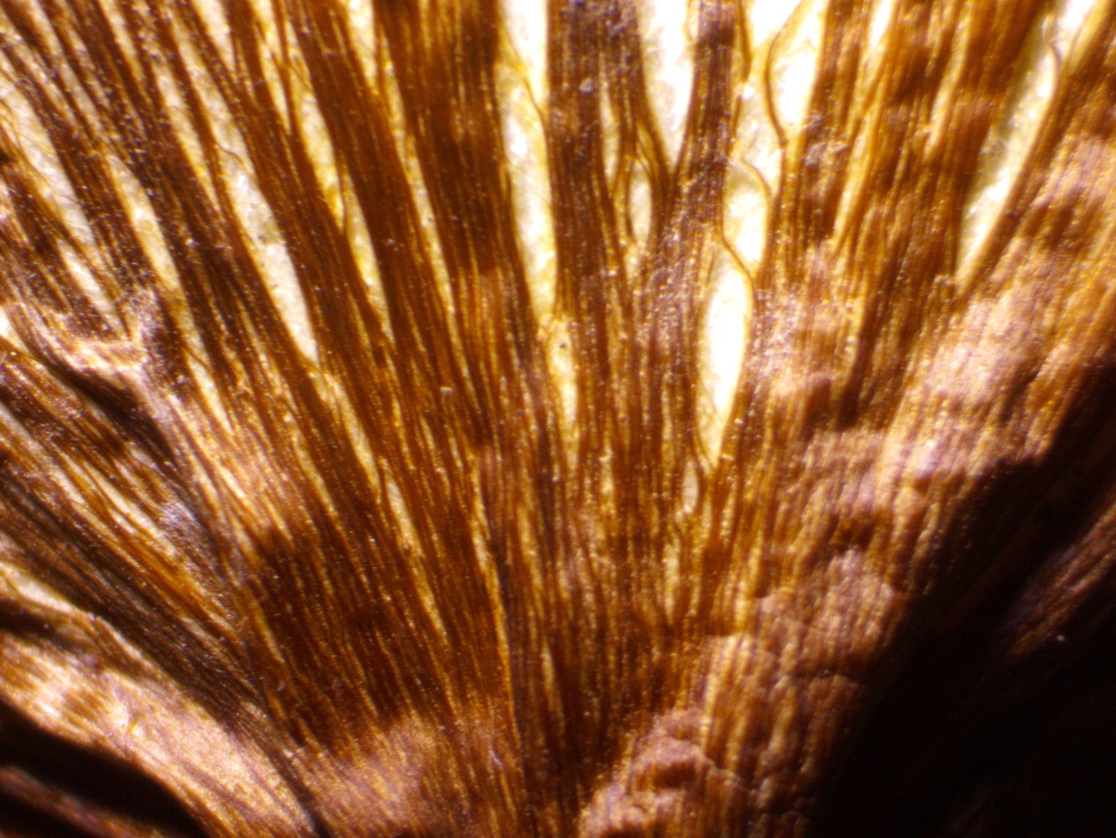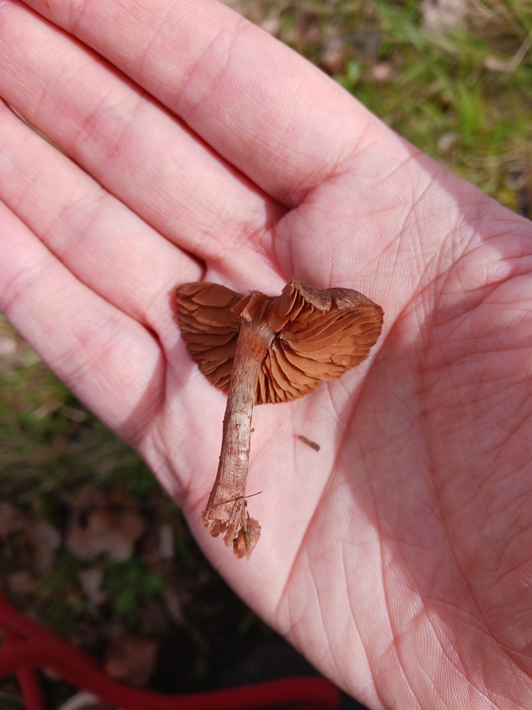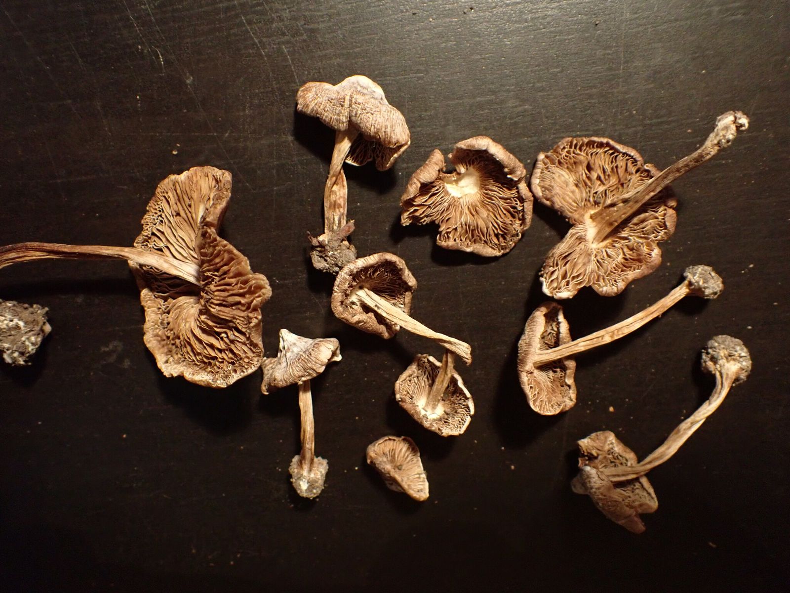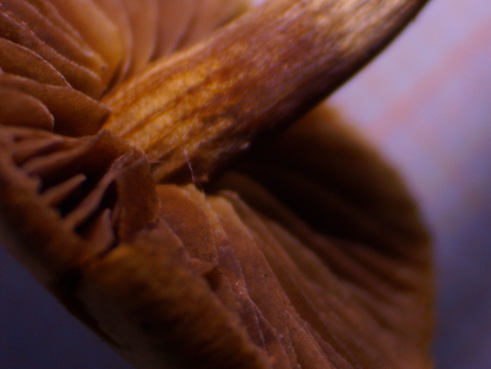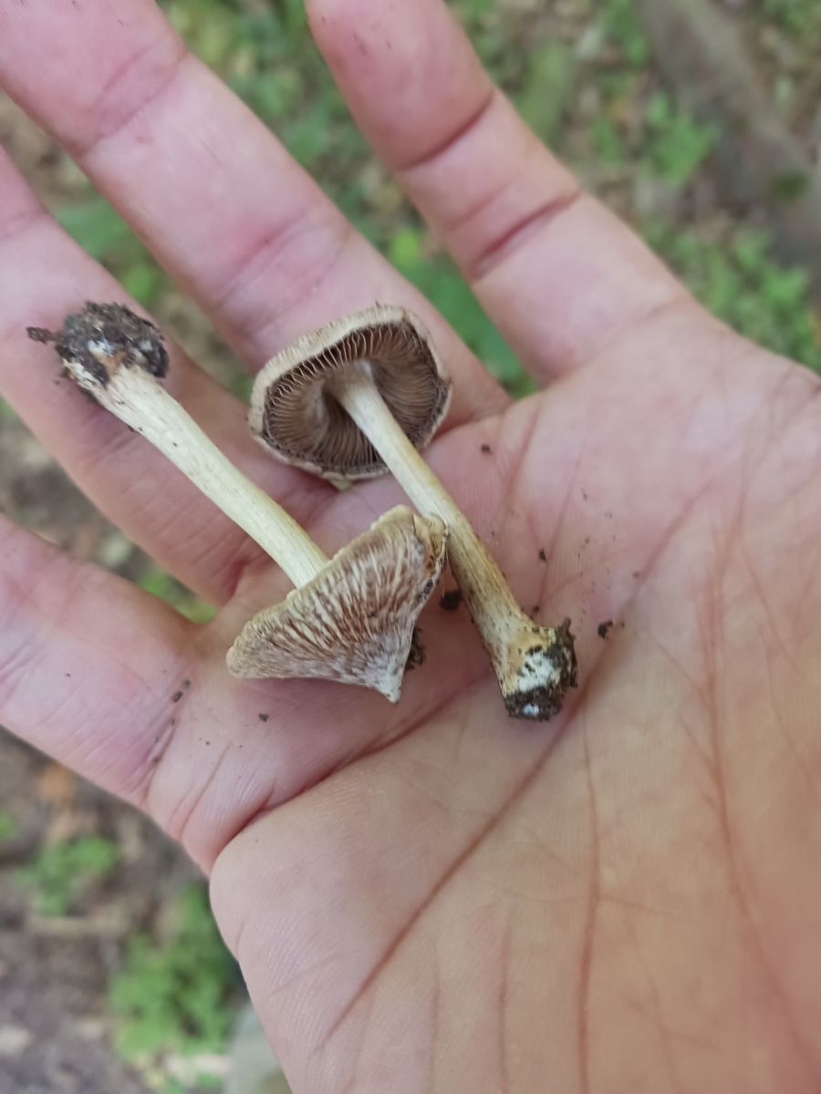 Die angehefteten Lamellen schienen mir im Feld rotbraun zu sein; zu Hause waren sie durch das Sporenpulver schokoladenbraun.
