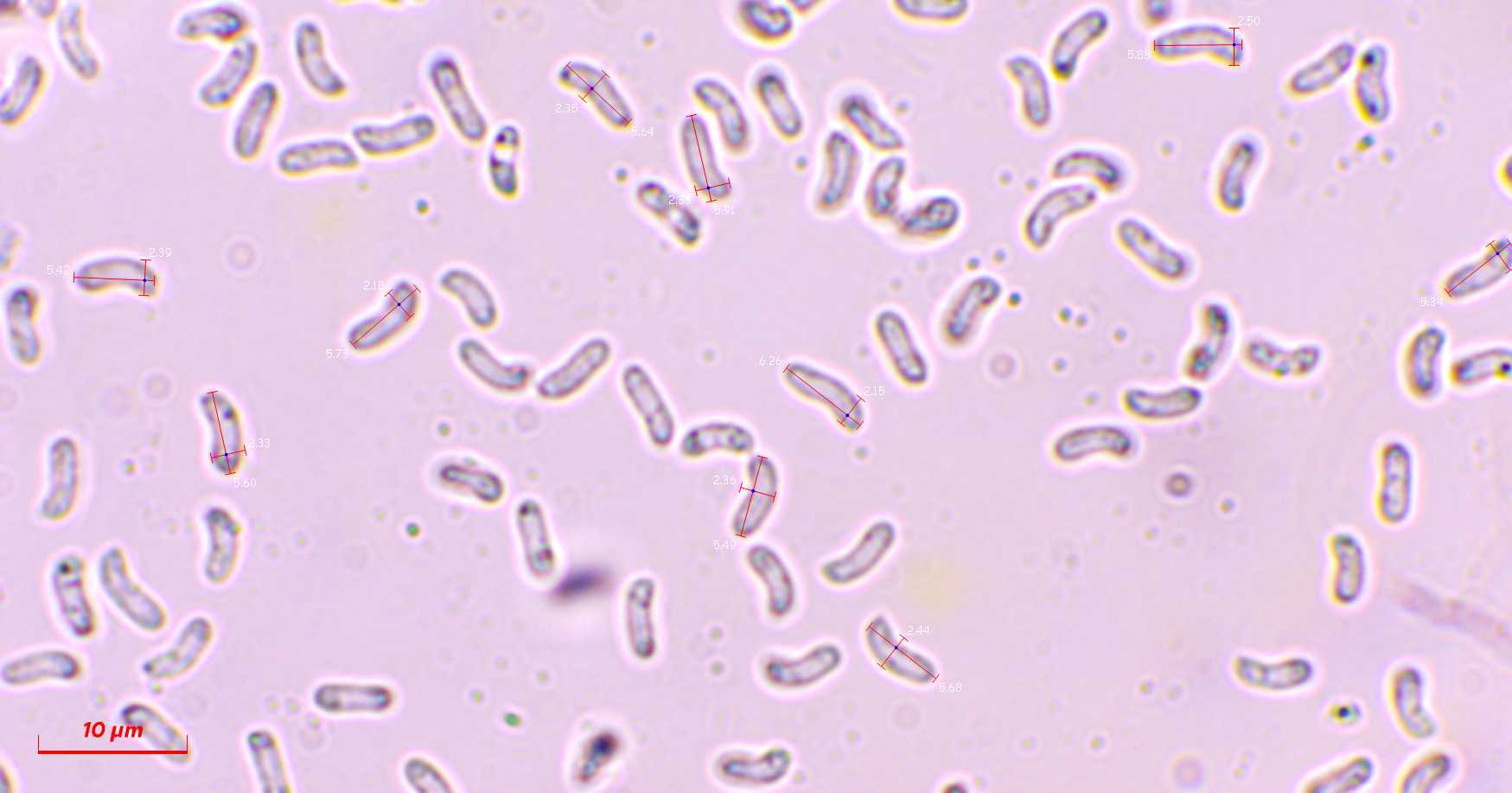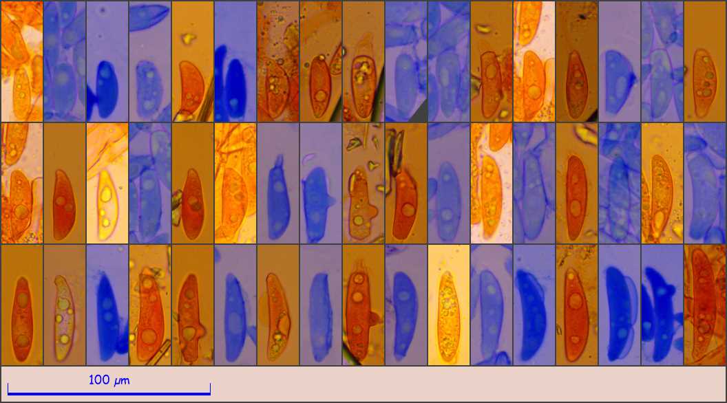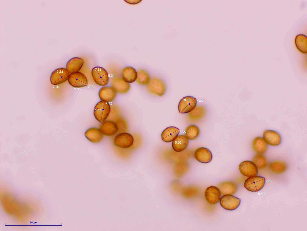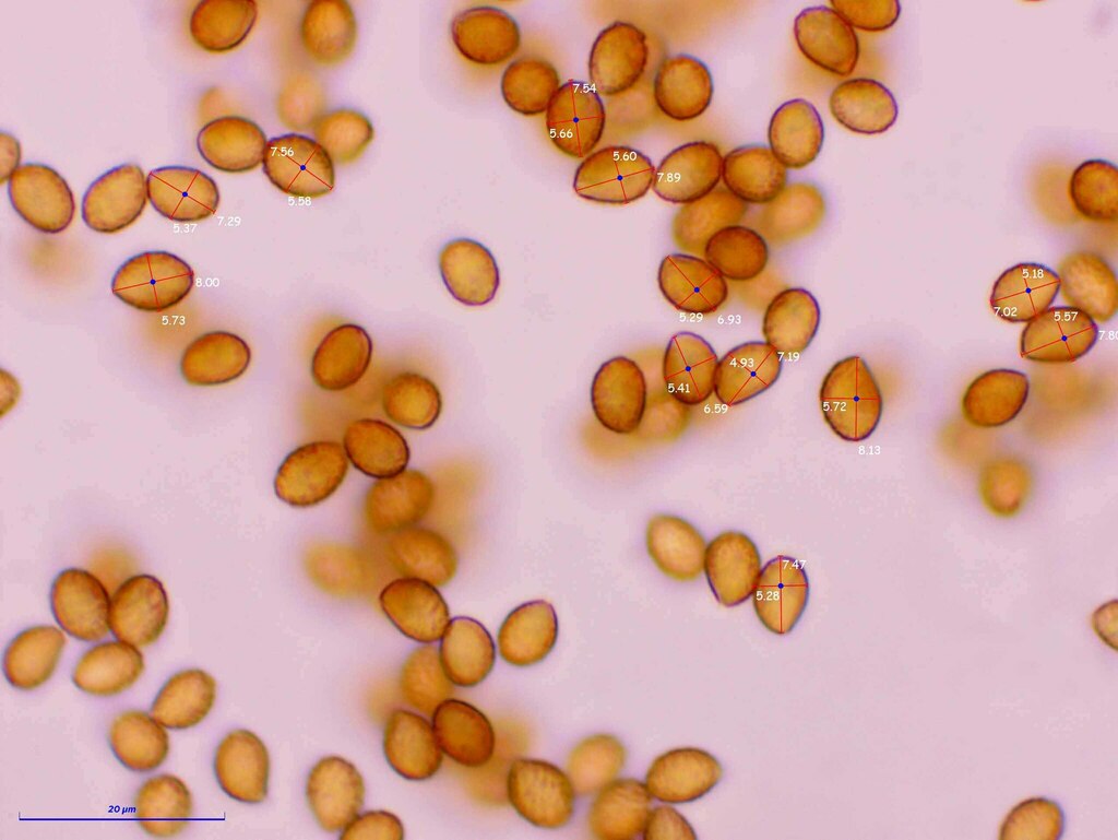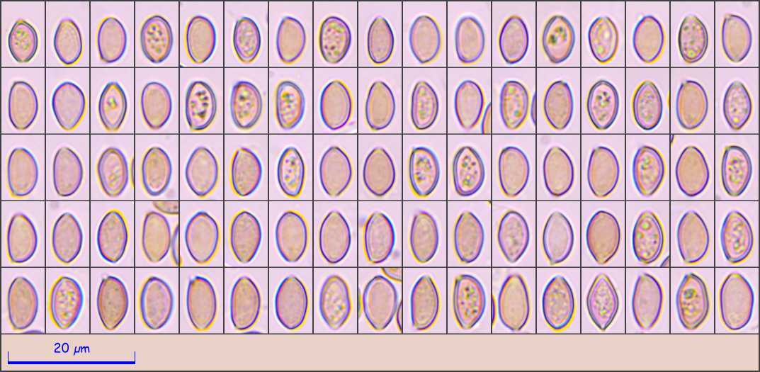 danke für die schnelle Antwort! Meinen Angaben für die Art zufolge passt aber die Sporengröße nicht wirklich. Diese sind in der Funga Nordica mit 12.5-15 x 7.5-8.5 x 7-8 μm angegeben. Meine 7.5-8.5 x 4.5 - 5 sind fast nur halb so groß.. und kalibriert ist auch alles richtig.