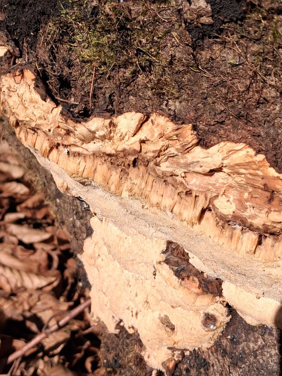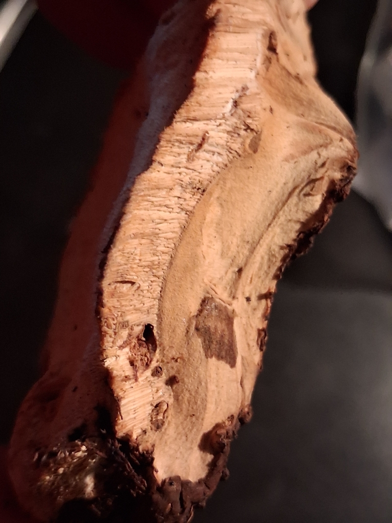 In-situ-Bild (ich glaube, man sieht hier auch ganz gut, dass der Pilz mMn mehrere Porenschichten hat also mehrjährig ist):Details vom Fundort: