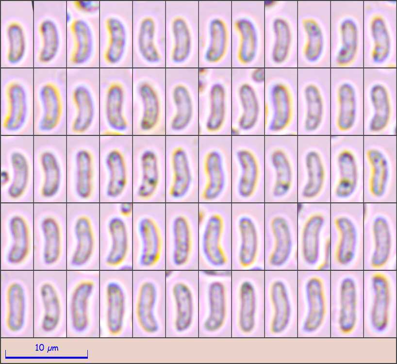 Die Maße (Sporenabwurf) betragen:(6.8) 7.4 - 8.5 (9) × (4) 4.5 - 5.1 (5.5) µm