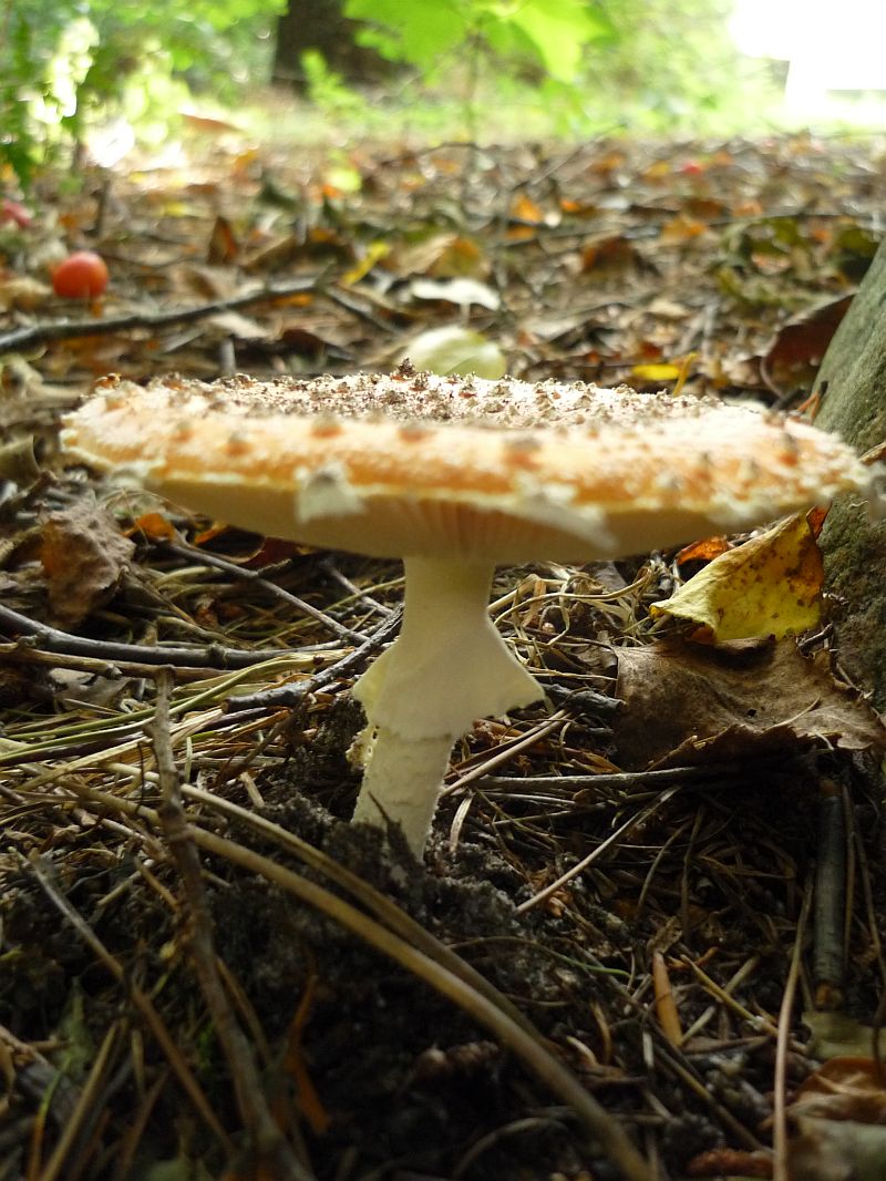 4. Diese hier haben eine Knolle und auch Flocken. Was ist das für eine Amanita? Leider habe ich nicht genug auf die Beschaffenheit des Stiels geachtet - kommt auf dem Foto nicht so raus...
