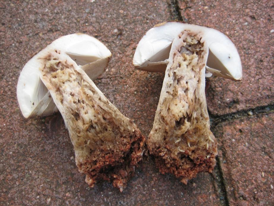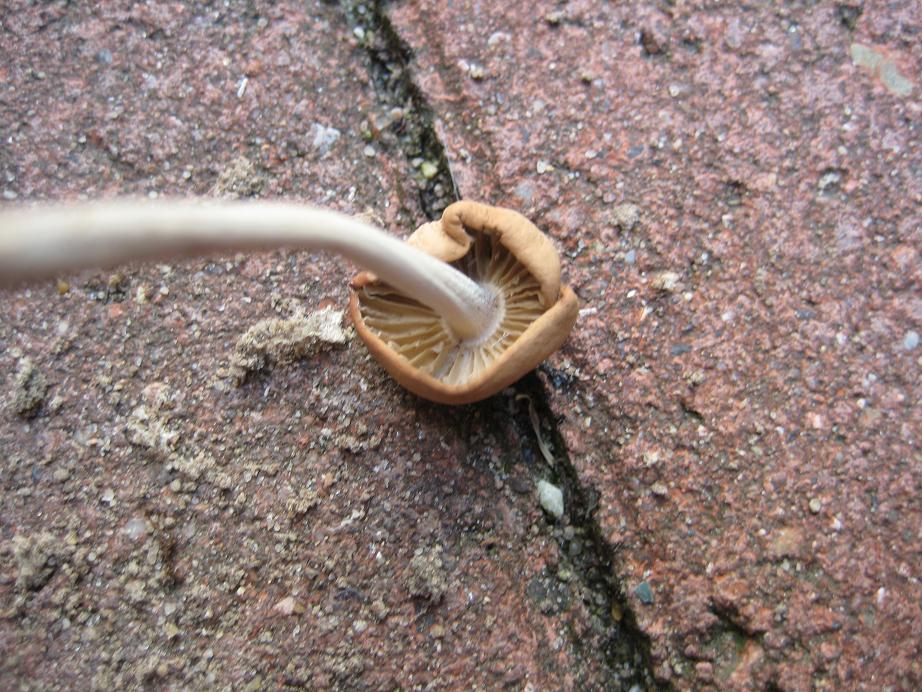 Und schließlich dieser dünnstielige Vertreter mit weißem Hut (Durchmesser ca. 2.5 cm), Lamellen weiß.