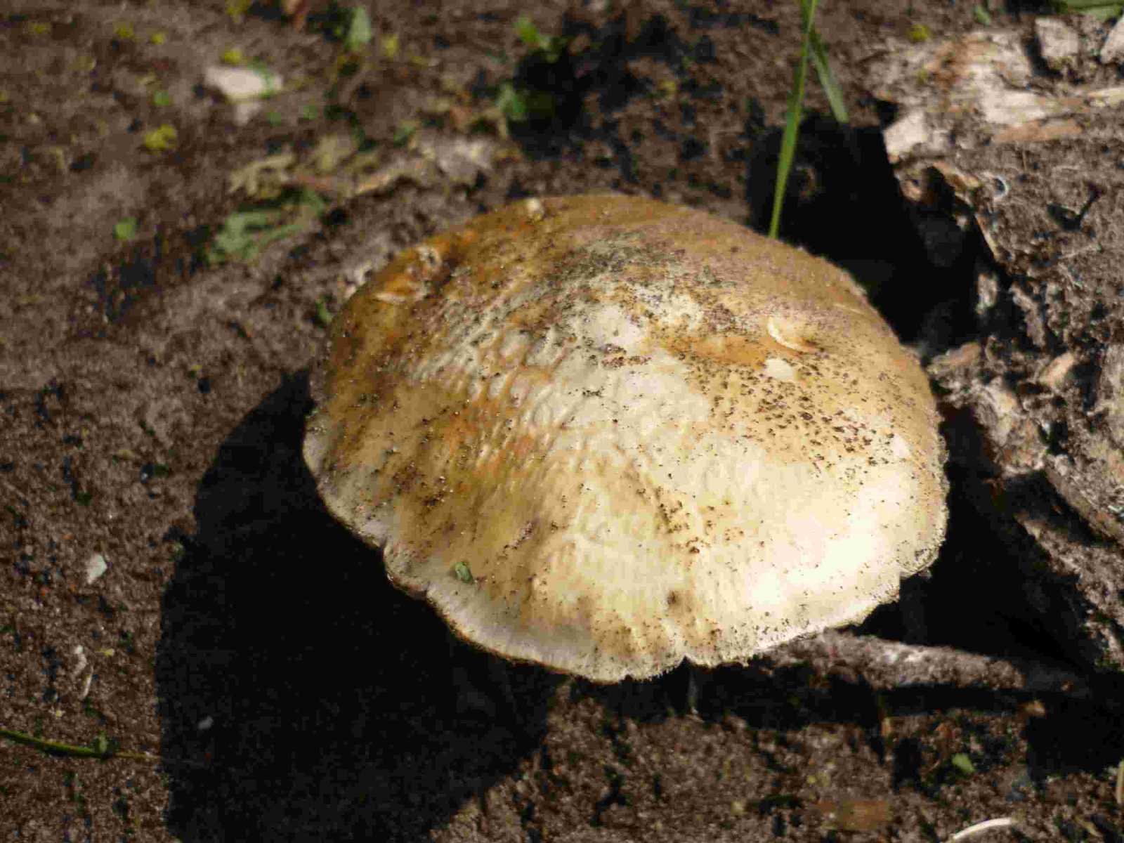Hut dunkel- und hellbraun, Lamellen dunkelbraun, wuchs im abgemähten Gras.