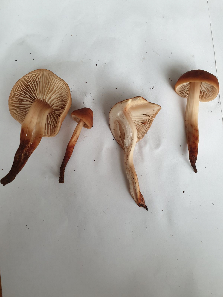 Der ganze Pilz ist ziemlich gummiartig, es verfärbt sich nichts bei Druck/Zerquetschung oder beim Anschneiden. Die Lamellen wirkten zunächst frei, sind aber ausgebuchtet angewachsen mit Zwischenlamellen.
