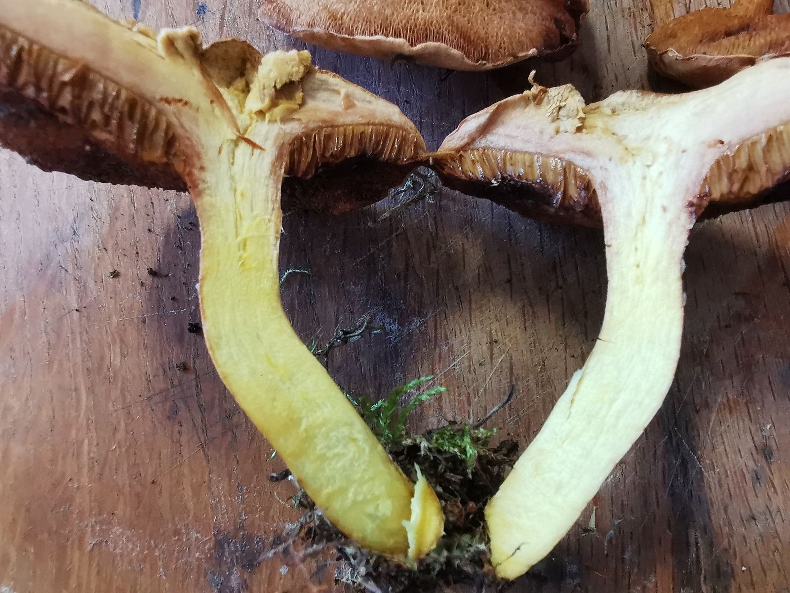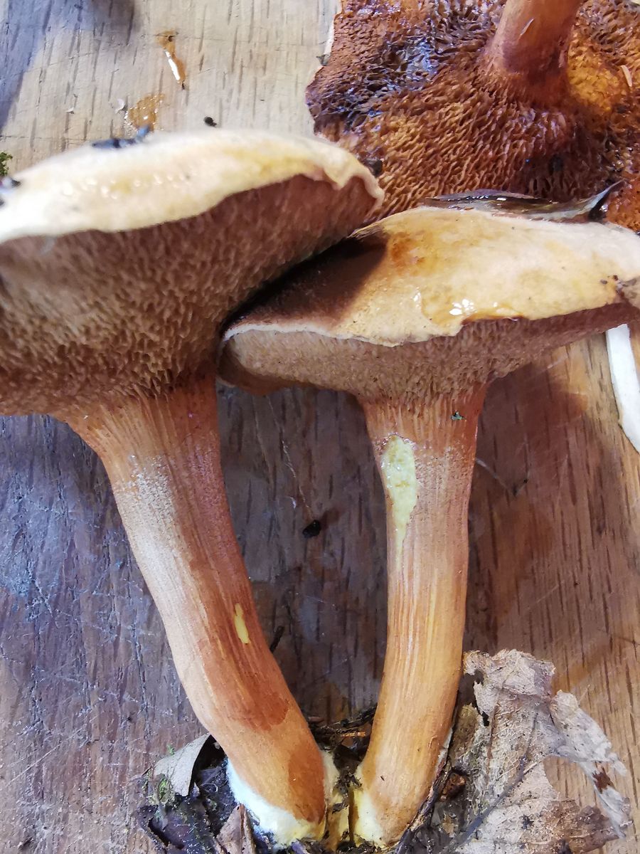 Er kommt hier relativ häufig vor. Dachte es wäre der Kuhröhrling, jedoch wird das Fleisch nicht rosa, wenn man diesen Pilz kocht/brät.