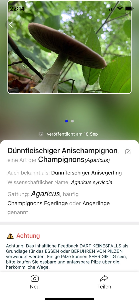 P.S. die App lösche ich wieder und vertraue auf meine Pilzkenntnis - da ist echt lebensgefährlich!