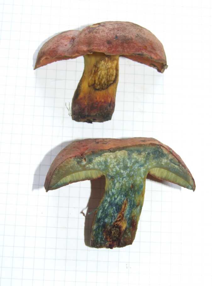 Heute habe ich zwei Pilze mitgenommen, die beim Schnitt sich stark verfärben.
