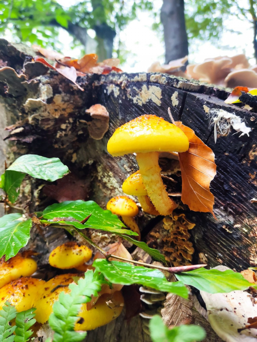 So gelb wird nicht einmal der Honiggelbe Hallimasch. Es ist ein Schüppling, nicht zum Essen, aber schön anzuschauen!