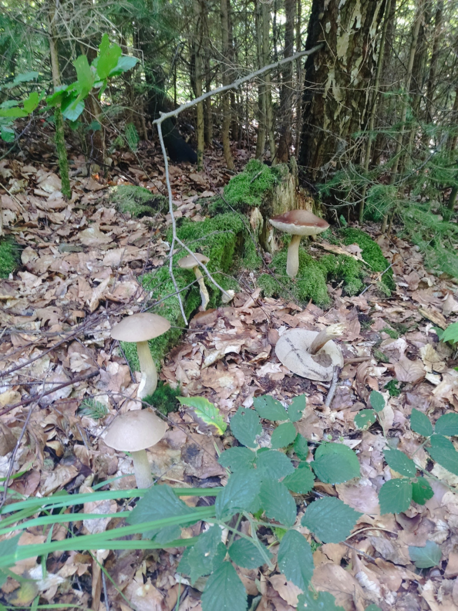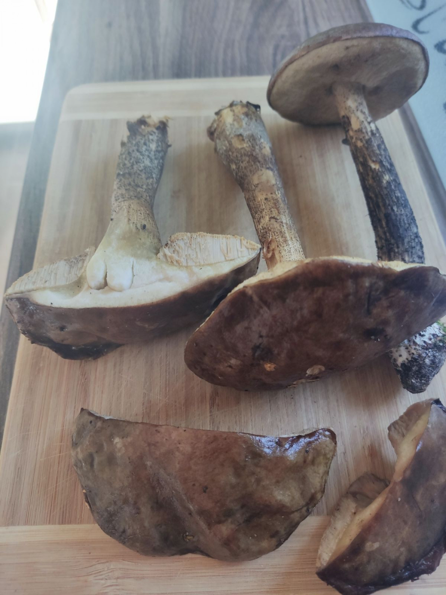 würdet ihr auch sagen dass das hier dreimal Birkenpilz ist, wobei das aufgeschnittene Exemplar schon "drüber" ist?