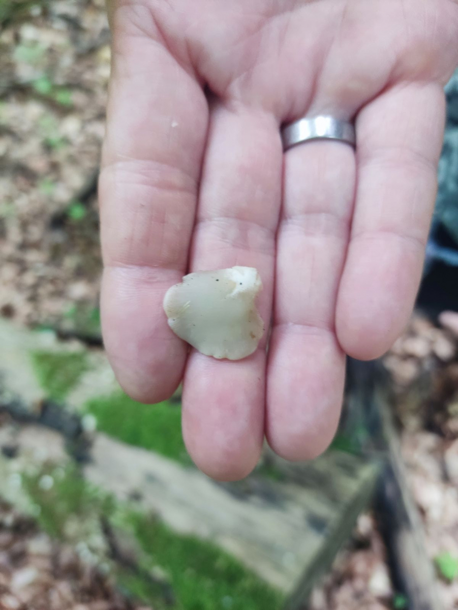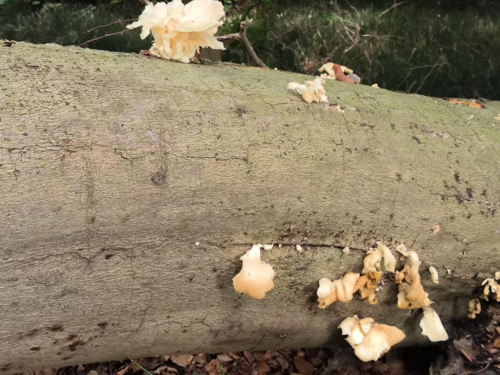 Fundort auf einer geschlagenen Buche, Geruch pilzig jedoch nicht Anis, Stiel vorhanden, cremefarbig bis bräunlich.