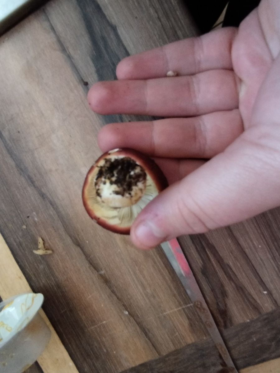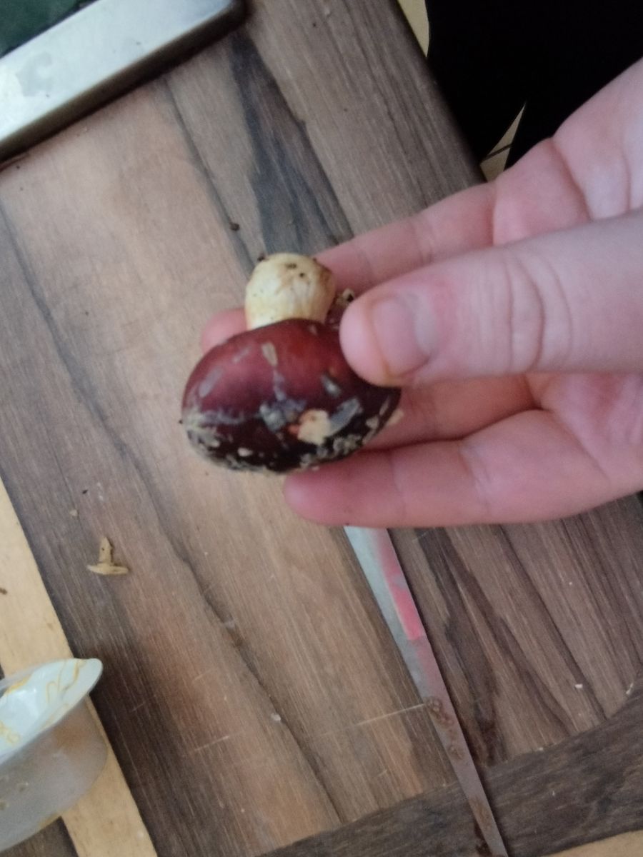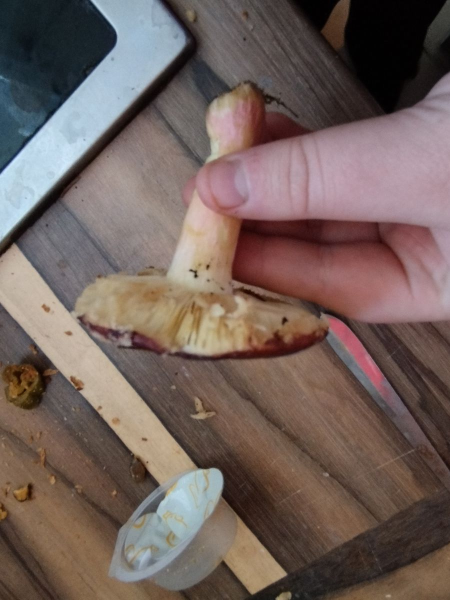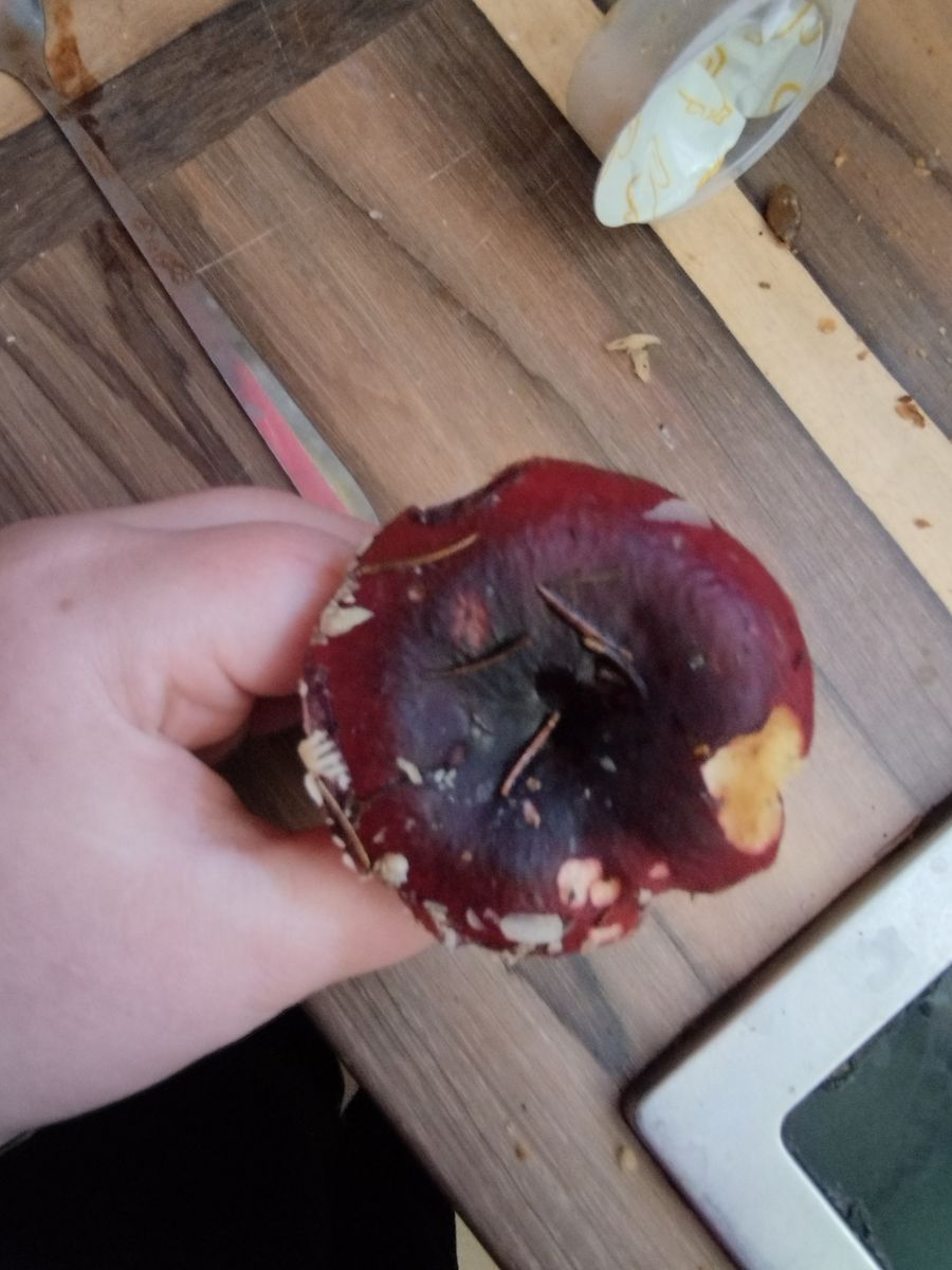 Hallo, riech doch mal an der Stielbasis. Die sollte ein bisschen nach Stachelbeerkompott riechen. Dann wäre es der Stachelbeertäubling. Es kann aber auch eine andere Art aus der Gattung der Täubling sein. Die ist ziemlich kompliziert.