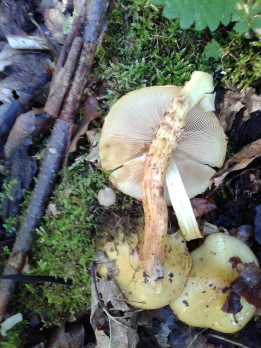 Hallo, heute nochmal mit den Hunden im Wald unterwegs, da haben sich die "Perlpilze" nur so aufgedrängt. Darunter auch ein sehr üppiger heller Vertreter: