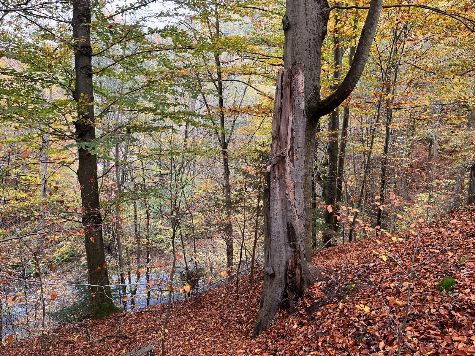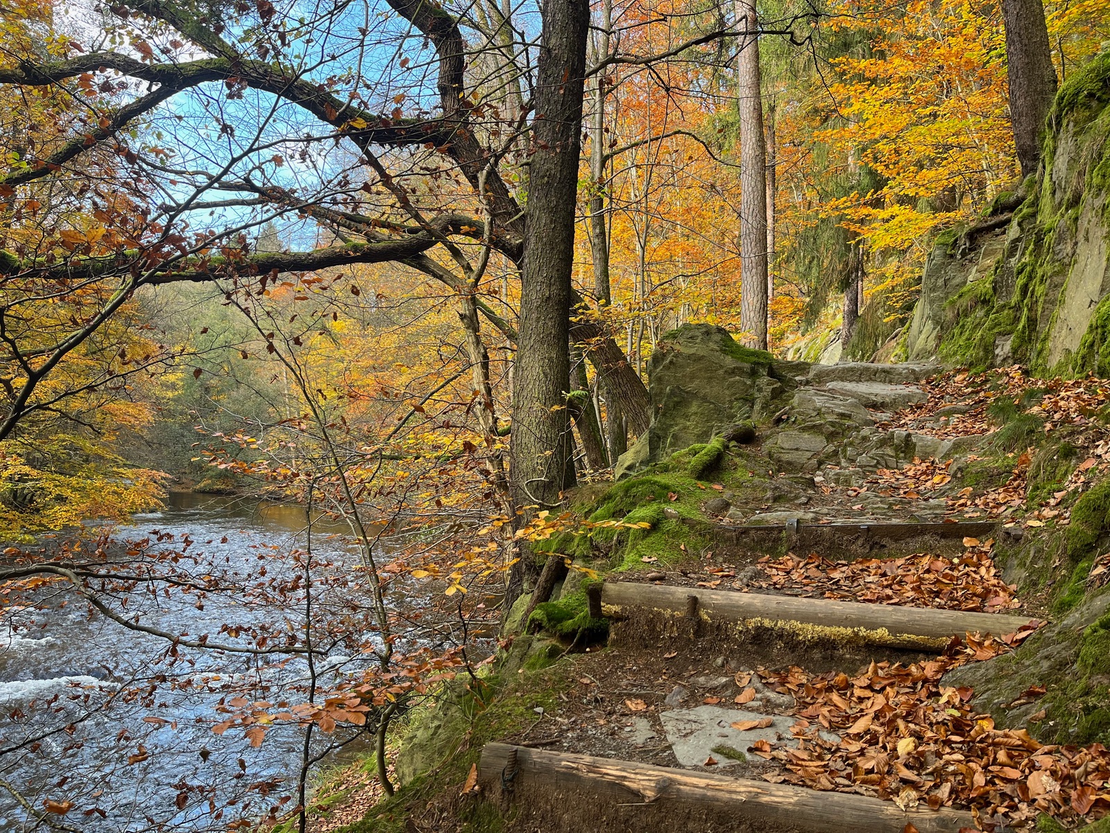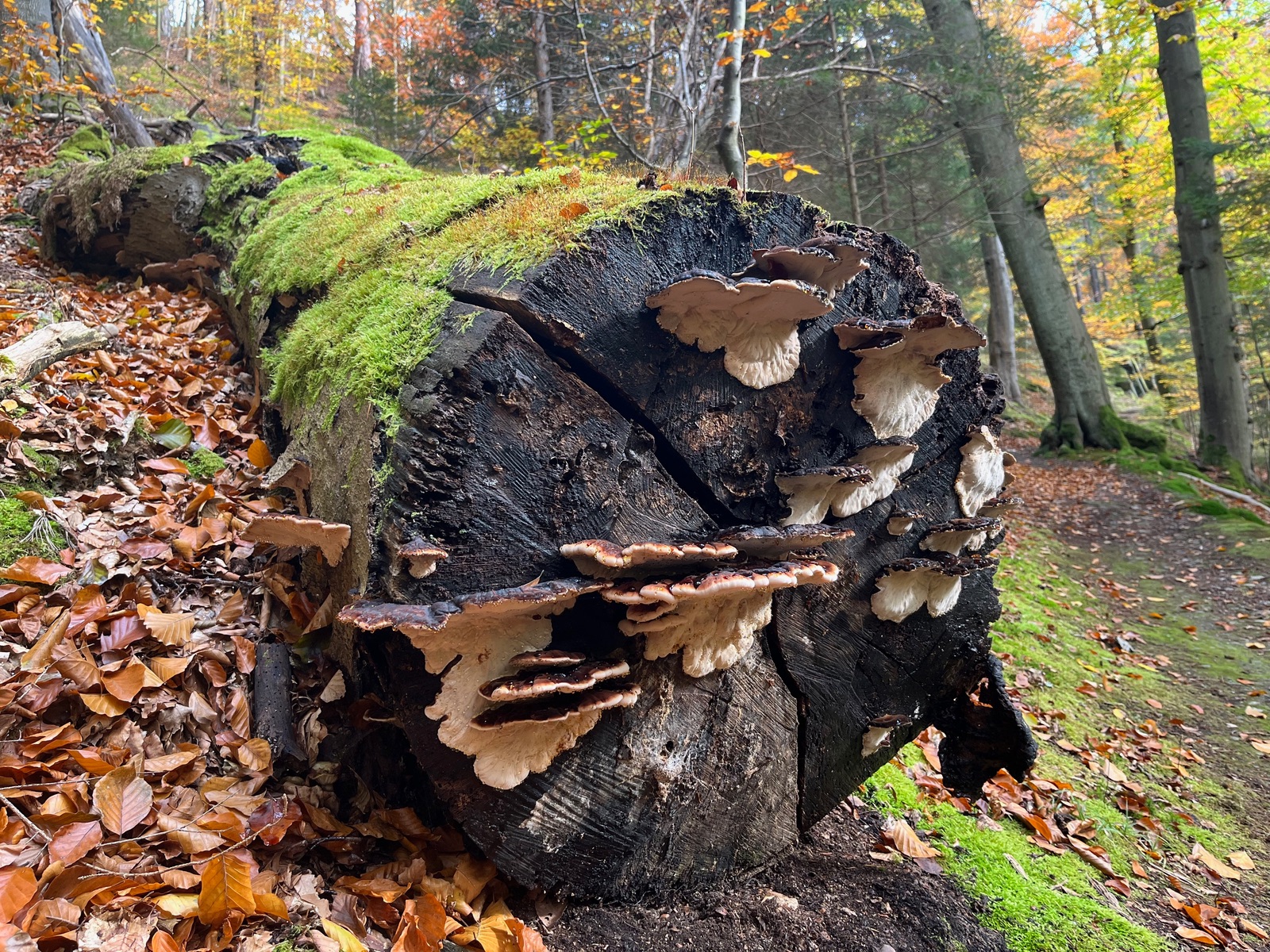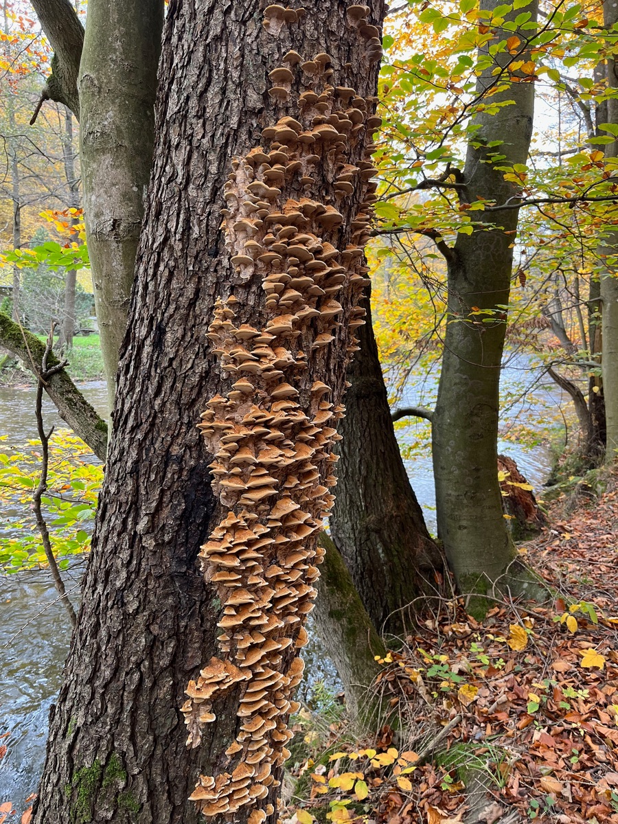 das Schwarzatal hat viele sehenswerte Ecken. Für mich eine der schönsten ist das Schwarzaknie bei Schwarzburg, auch wegen der Vielfalt an Pilzen, die dort zu jeder Jahreszeit zu finden sind. Wegen der Laubfärbung setzt der Herbst noch mal eins drauf, also musste ich mal wieder hin. Und es gab wie immer neben dem, was gerade überall wächst einige besonders schöne Pilze an Holz zu bewundern.