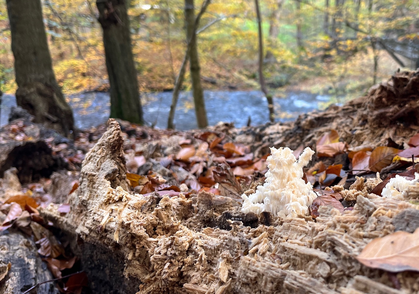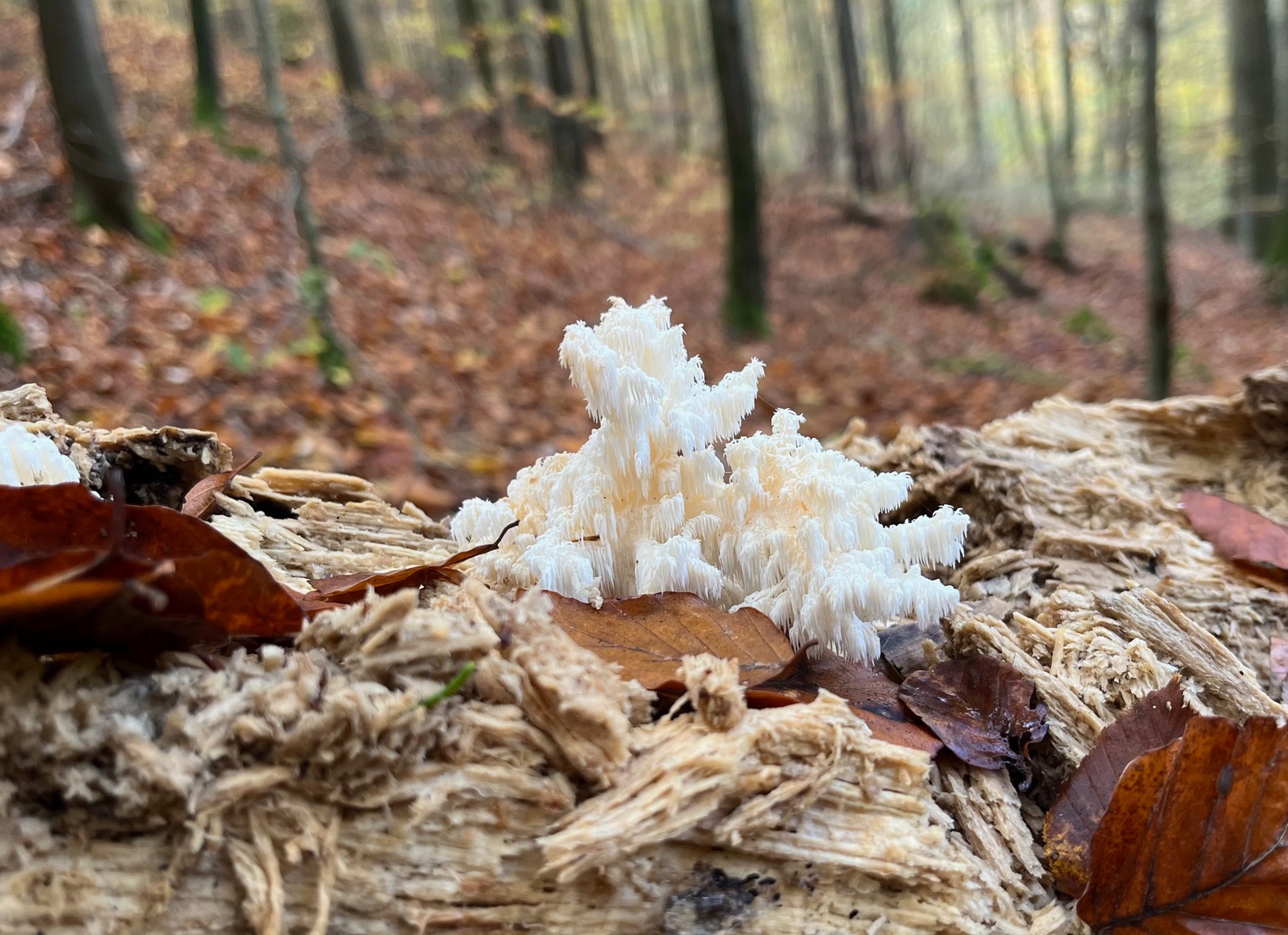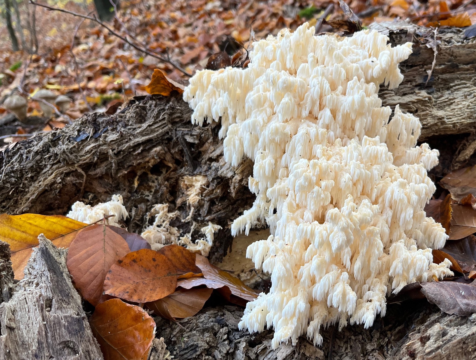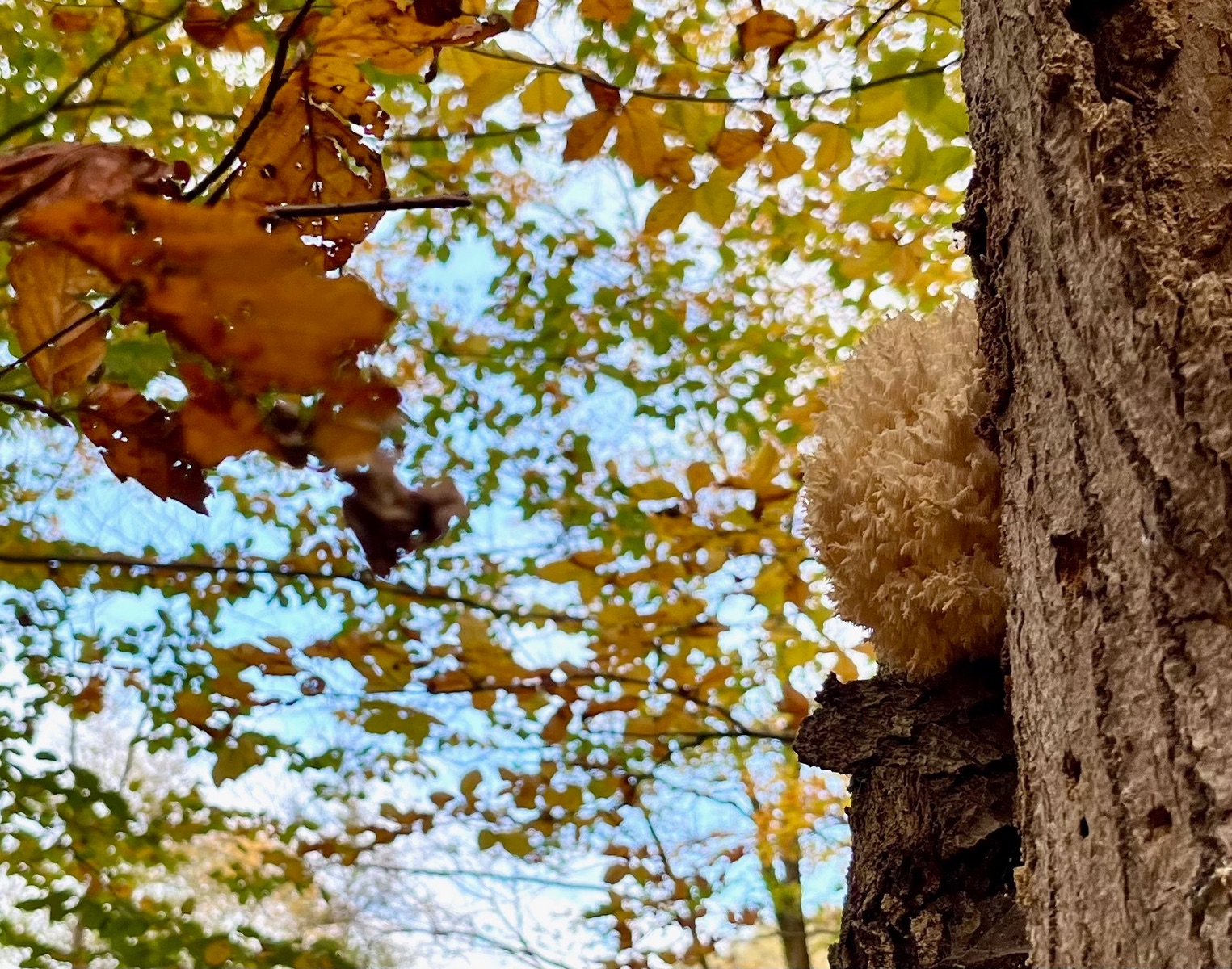 12. - Nachschub bei Hericium! Was für ein schöner Tag. Der Stachelbart hat schon ein neues Baumopfer gefunden.
