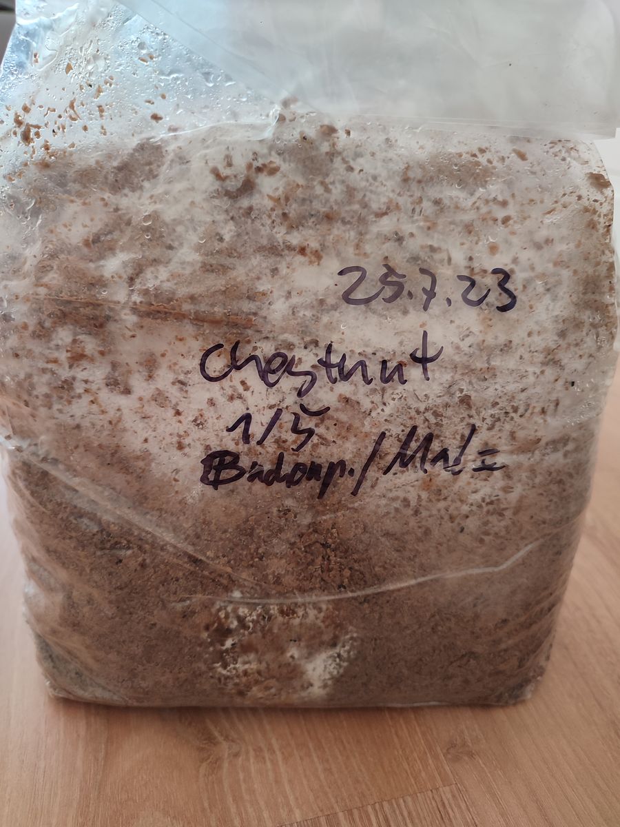 5: Durchwachsen des Chestnuts. Schön ersichtlich, das sich das Mycel scheinbar lieber nach oben, als nach unten ausbreitet.