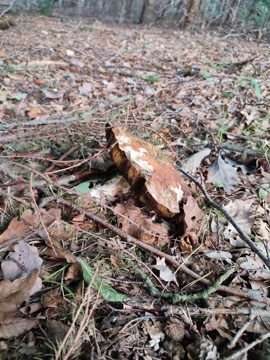 Bingo. Fast genau an der Stelle wieder ein riesen Fruchtkörper und wieder viel zu alt. In der Umgebung fanden sich dann auch diverse Kollegen gleichen Alters. Teilweise angeschnitten, die Stelle kennt also noch jemand.