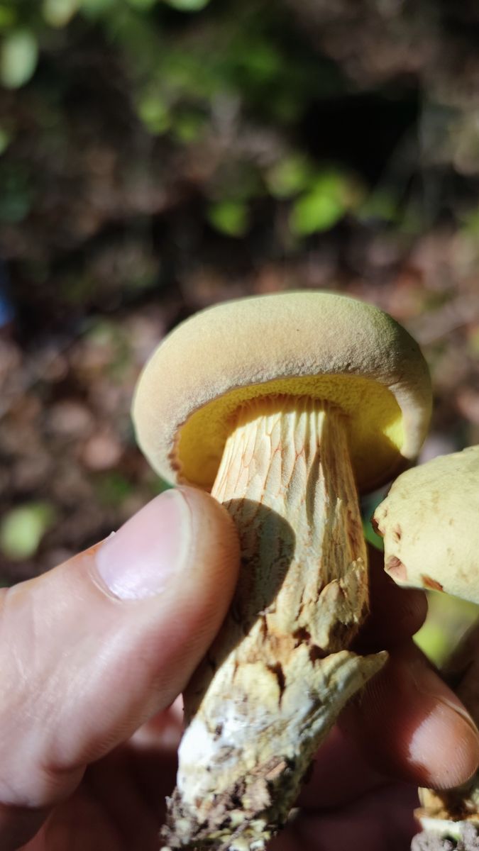Röhren blauen bei druck ganz wenig, Fleisch u Huthaut eher rötend(rote Schicht unter gelber Haut-siehe Querschnitt)