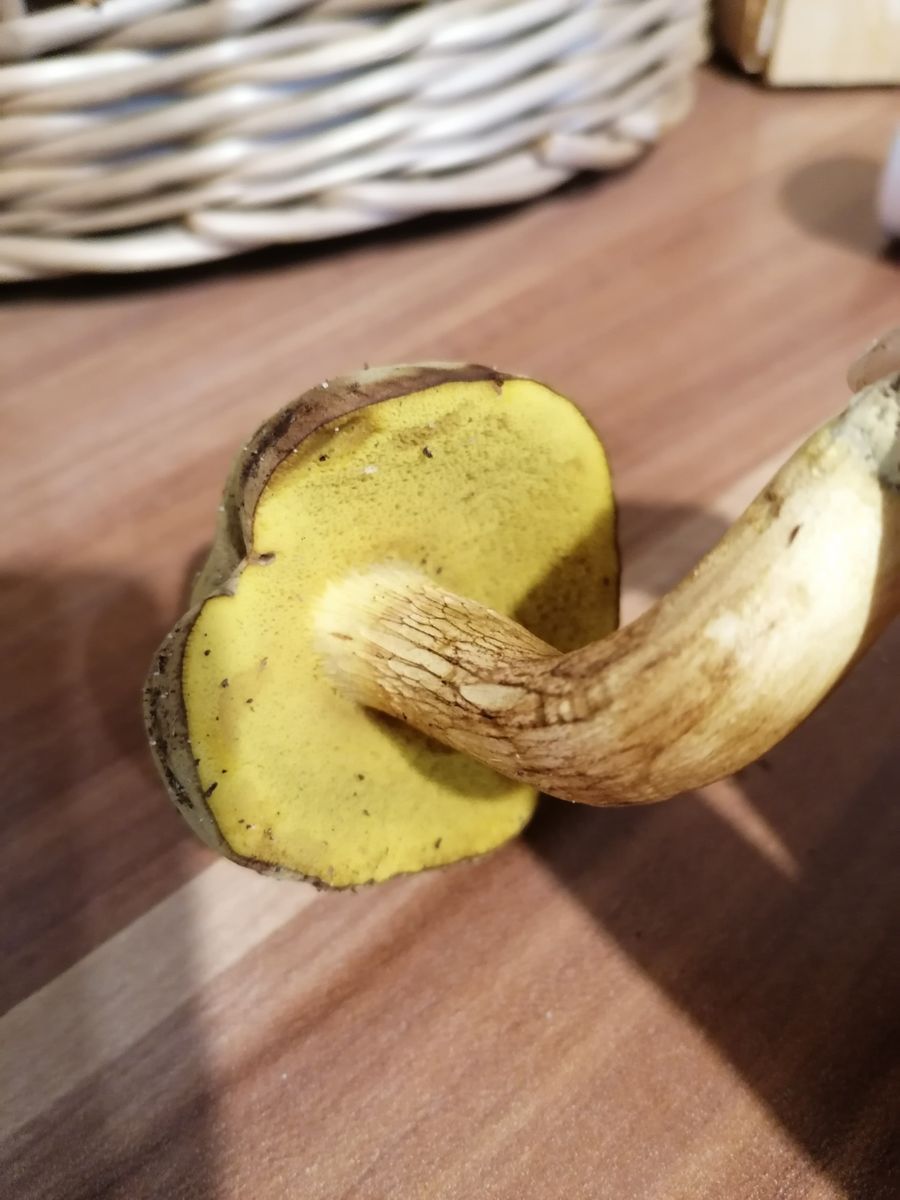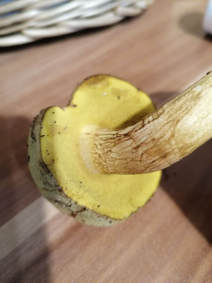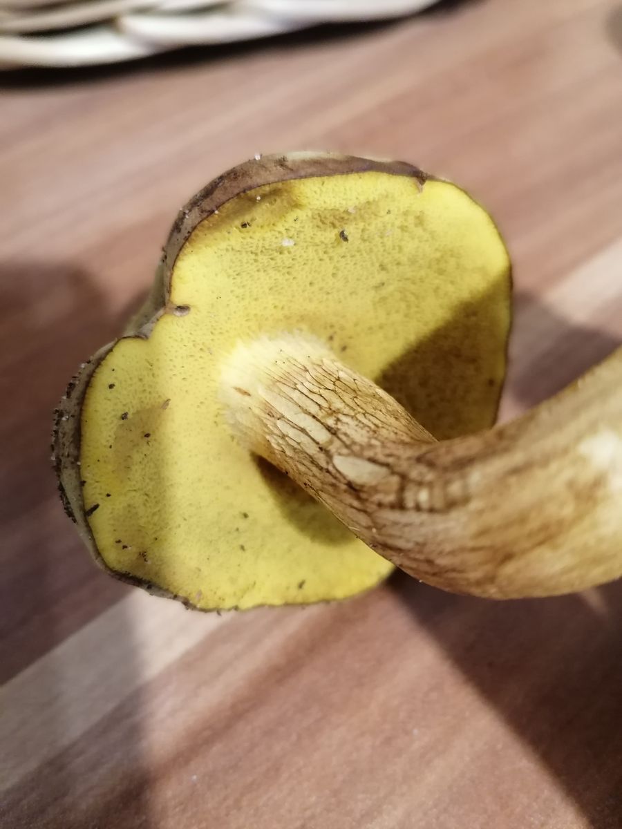 Hallöchen, ich habe die letzten Jahre fast nur Maronen und Rotfußröhrlinge gesammelt. Nun wachsen bei uns dieses Jahr auf einmal nur noch Gallenröhrlinge (wirklich überall im Wald). Nun habe ich einen Röhrling gefunden, bei dem ich eigentlich auch an einen Gallenröhrling denke, aber er sieht ganz anders aus als die anderen. Er hat ein dunkles Netz, aber keine weiß/rosa Röhren, sondern dunkel gelb. Hat jemand eine Idee? Das hat mich doch verwirrt. Stand im Mischwald in der Nähe von Fichten und Buchen. Der Hut ist ca. 6 cm. breit, der Stiel dünn, gelb und etwas verdreht. Der Hut ist auffällig schmutzig oker-farbend. Geruch etwas muffig. Keine hervorstehenden Röhren, eher heruntergezogene Huthaut.