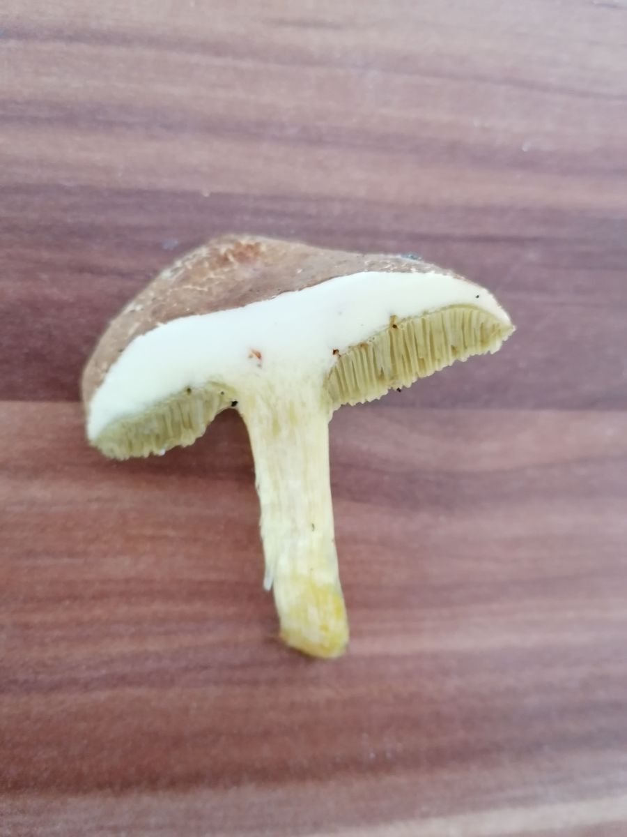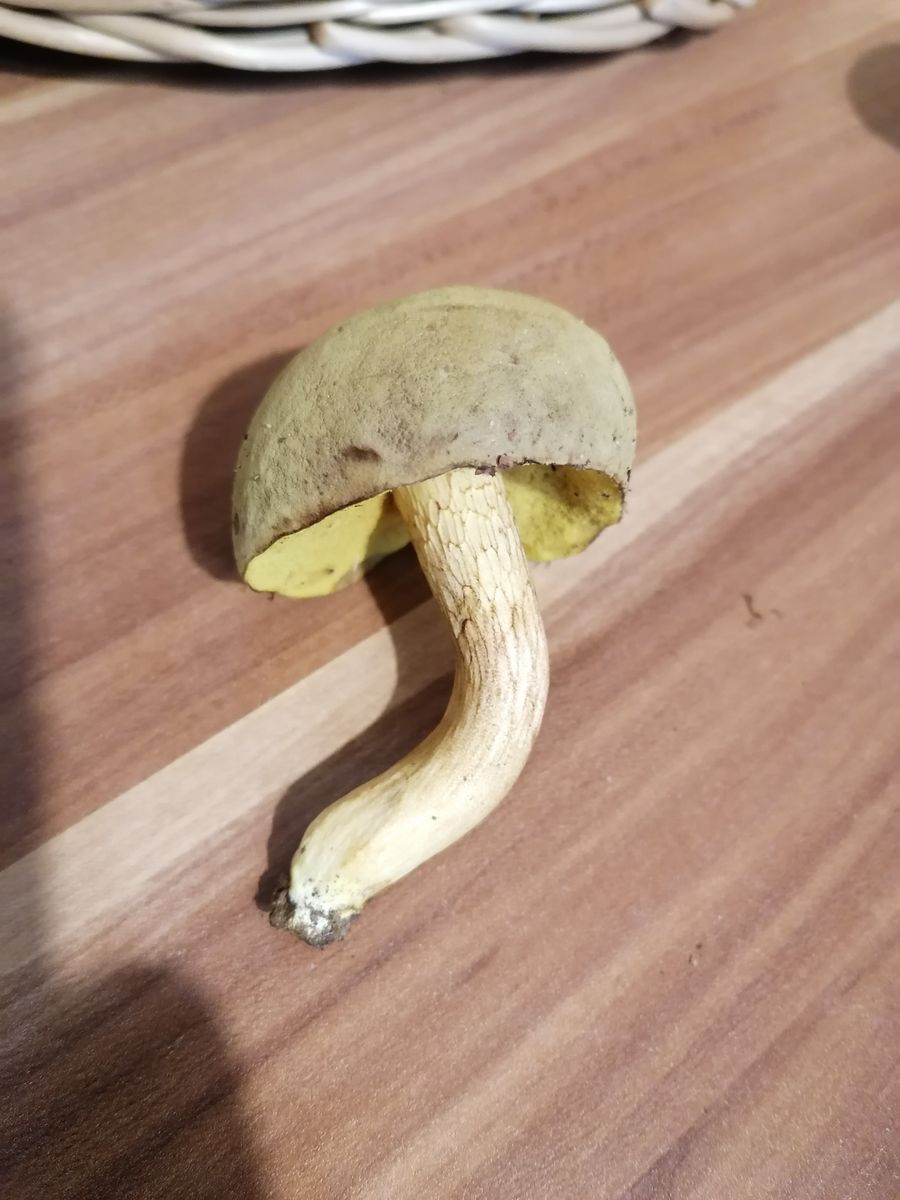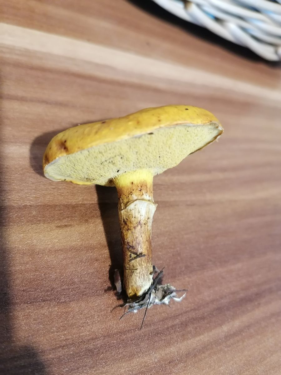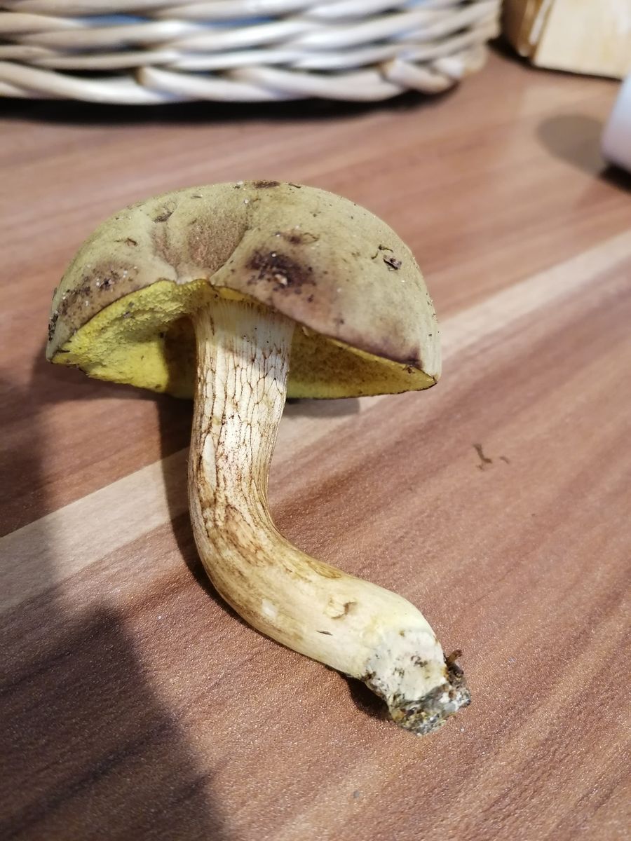 Hallöchen, ich habe die letzten Jahre fast nur Maronen und Rotfußröhrlinge gesammelt. Nun wachsen bei uns dieses Jahr auf einmal nur noch Gallenröhrlinge (wirklich überall im Wald). Nun habe ich einen Röhrling gefunden, bei dem ich eigentlich auch an einen Gallenröhrling denke, aber er sieht ganz anders aus als die anderen. Er hat ein dunkles Netz, aber keine weiß/rosa Röhren, sondern dunkel gelb. Hat jemand eine Idee? Das hat mich doch verwirrt. Stand im Mischwald in der Nähe von Fichten und Buchen. Der Hut ist ca. 6 cm. breit, der Stiel dünn, gelb und etwas verdreht. Der Hut ist auffällig schmutzig oker-farbend. Geruch etwas muffig. Keine hervorstehenden Röhren, eher heruntergezogene Huthaut.