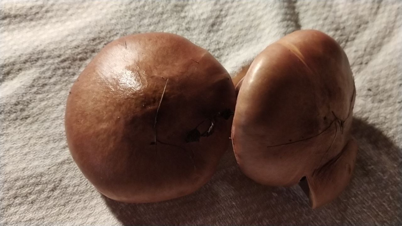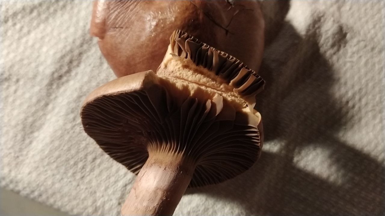 komischerweise haben die Pilze Lamellen in unterschiedlichen Farben violettgrau, oder braun