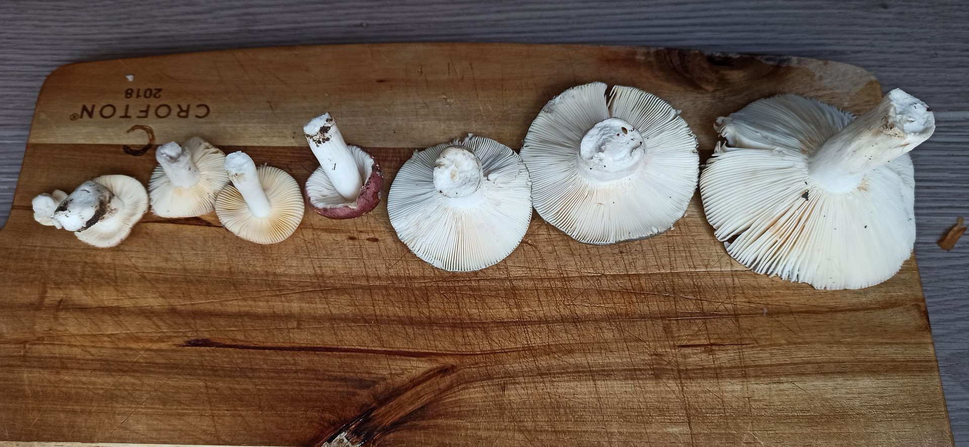 Zu Pilz 7: Ich hab alle mal angeknabbert und der mit dem dunklen roten Hut hat leicht scharf geschmeckt, die anderen neutral.