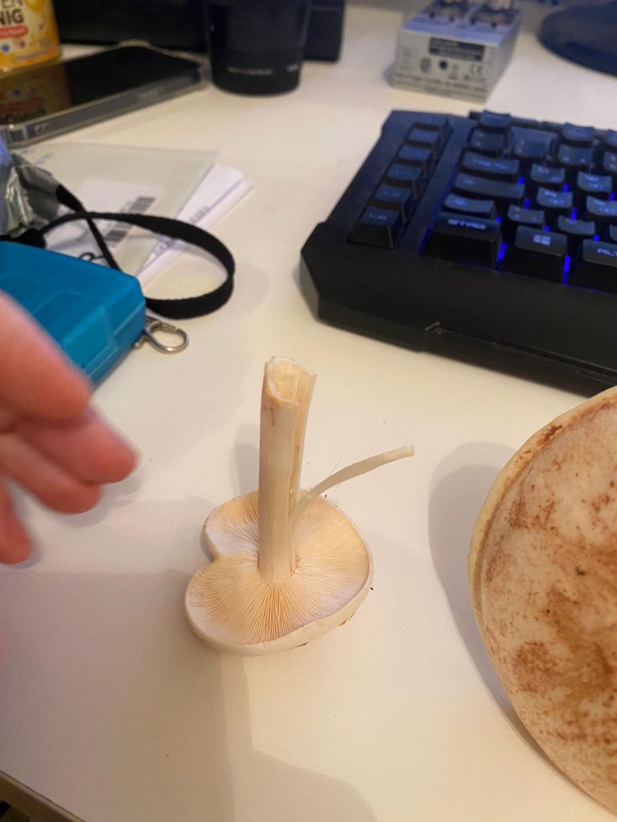 Ich habe 2 dieser Exemplare im Park neben einer Straße gefunden. Nebenann noch einige alte vergammelte Stiel sowie hutdurchmesser 13 cm neben einem Laubbaum.
