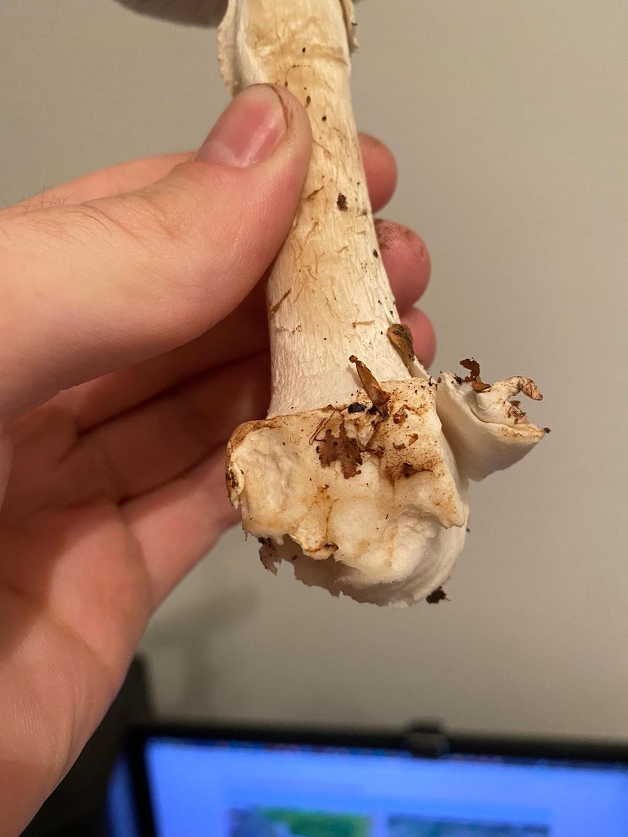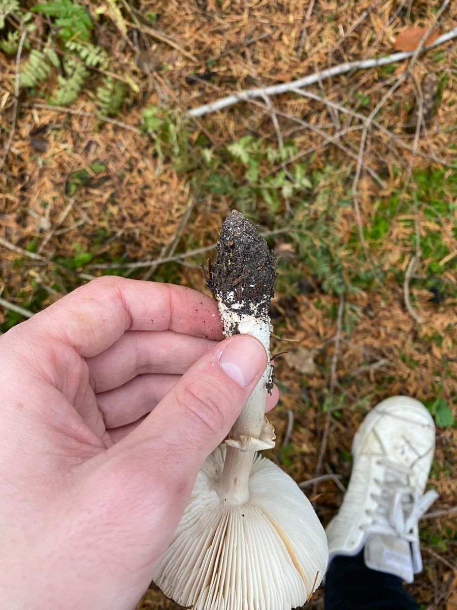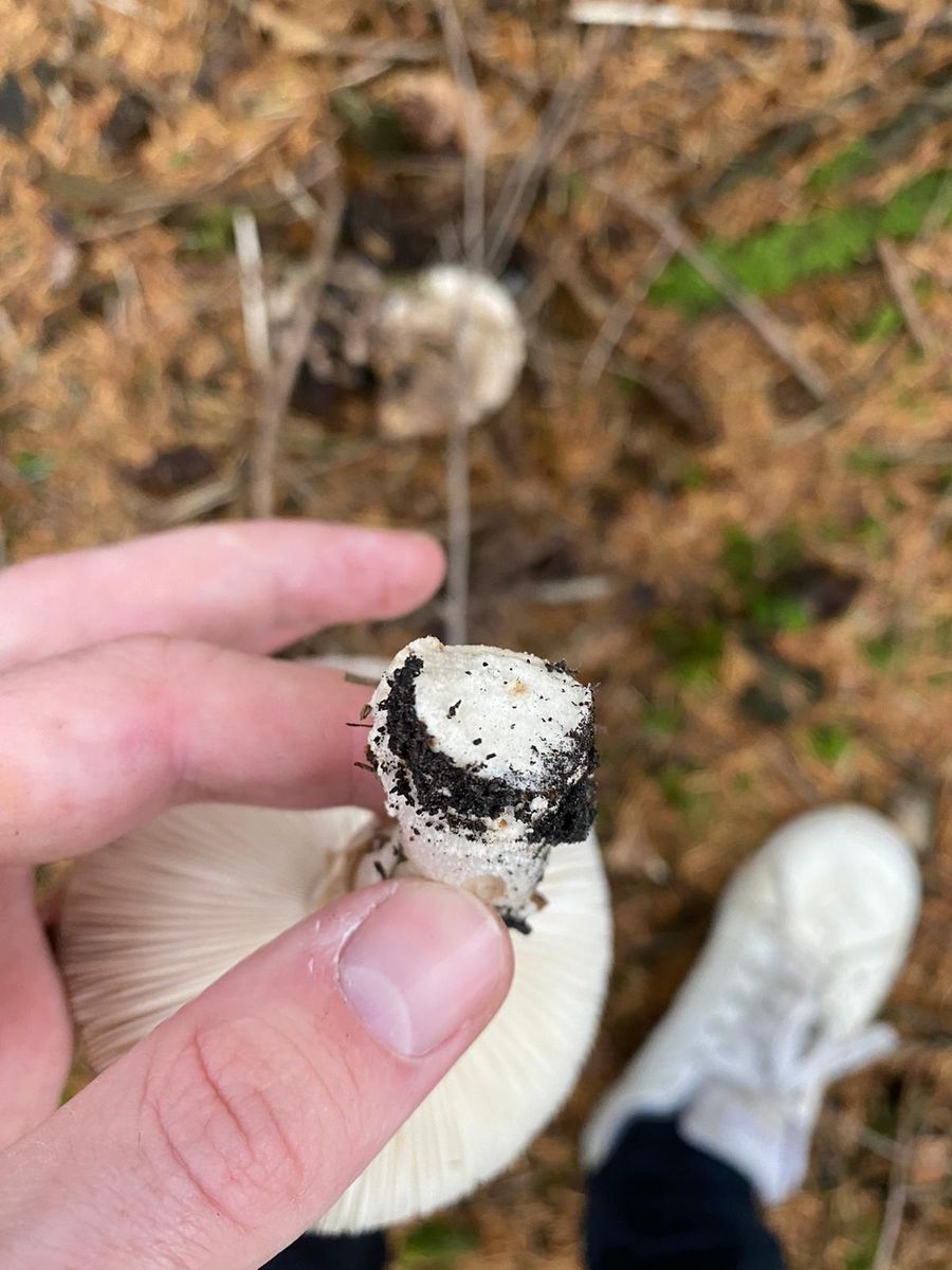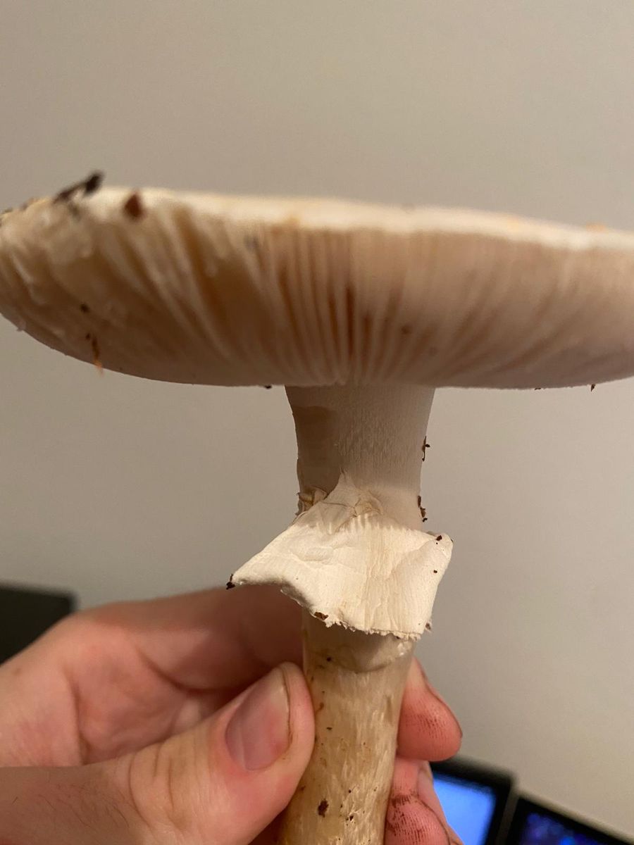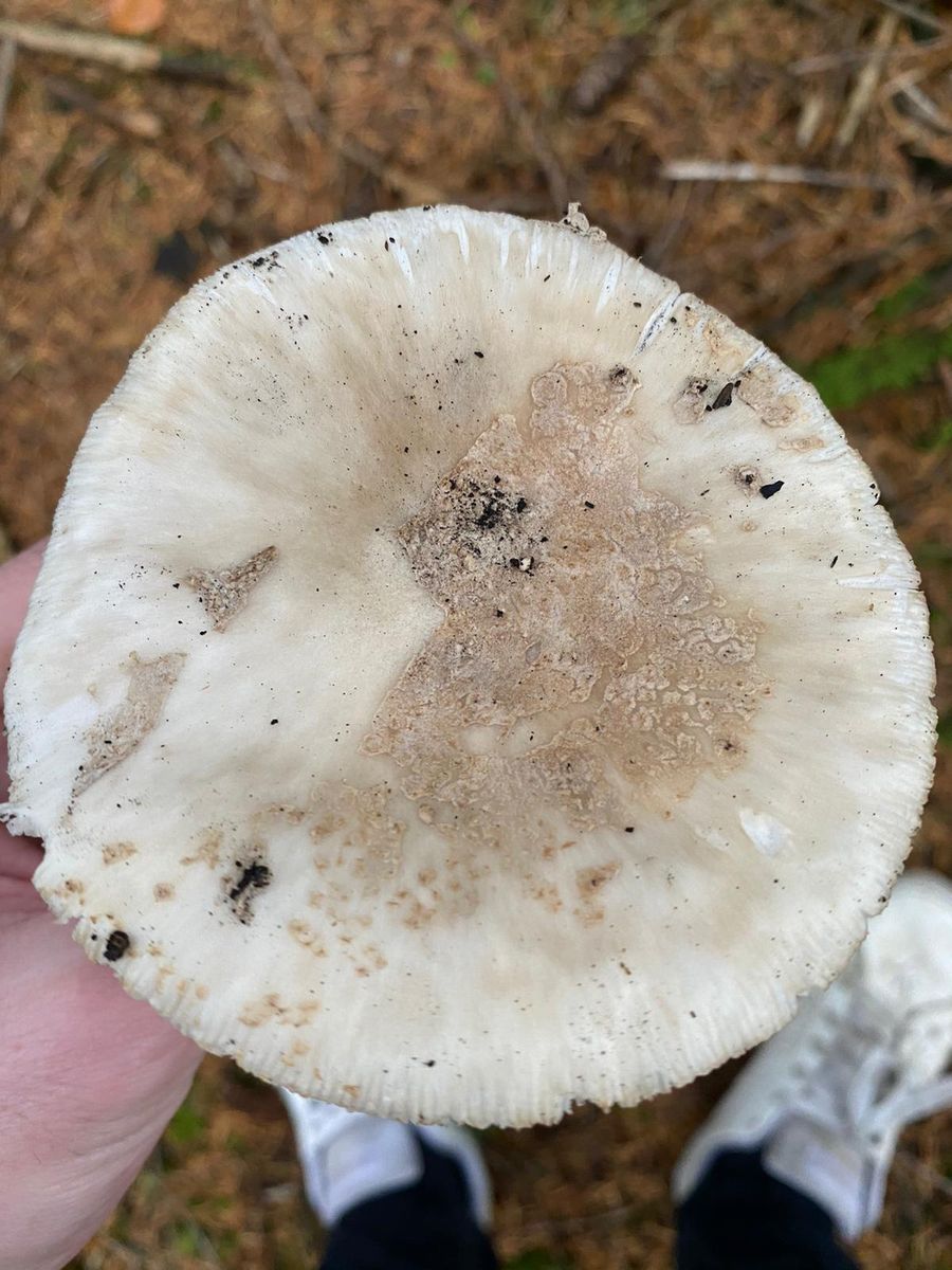 Sie röten nicht so richtig, und haben eine viel weißere kappe, riechen erdig, und haben auch diese riefung am Häutchen. In der Umgebung sind auch unmengen an Perlpilzen gewachsen, kann das einfach ein helleres exemplar sein?