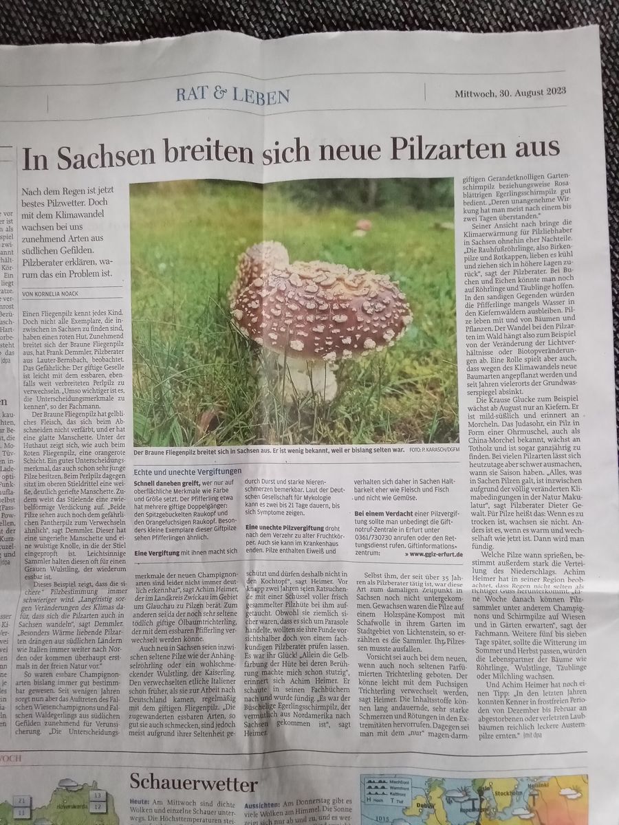 Da ist erst ab Donnerstag etwas vorhergesagt aber ob der unserer Pilzausstellung helfen wird ist unwahrscheinlich
