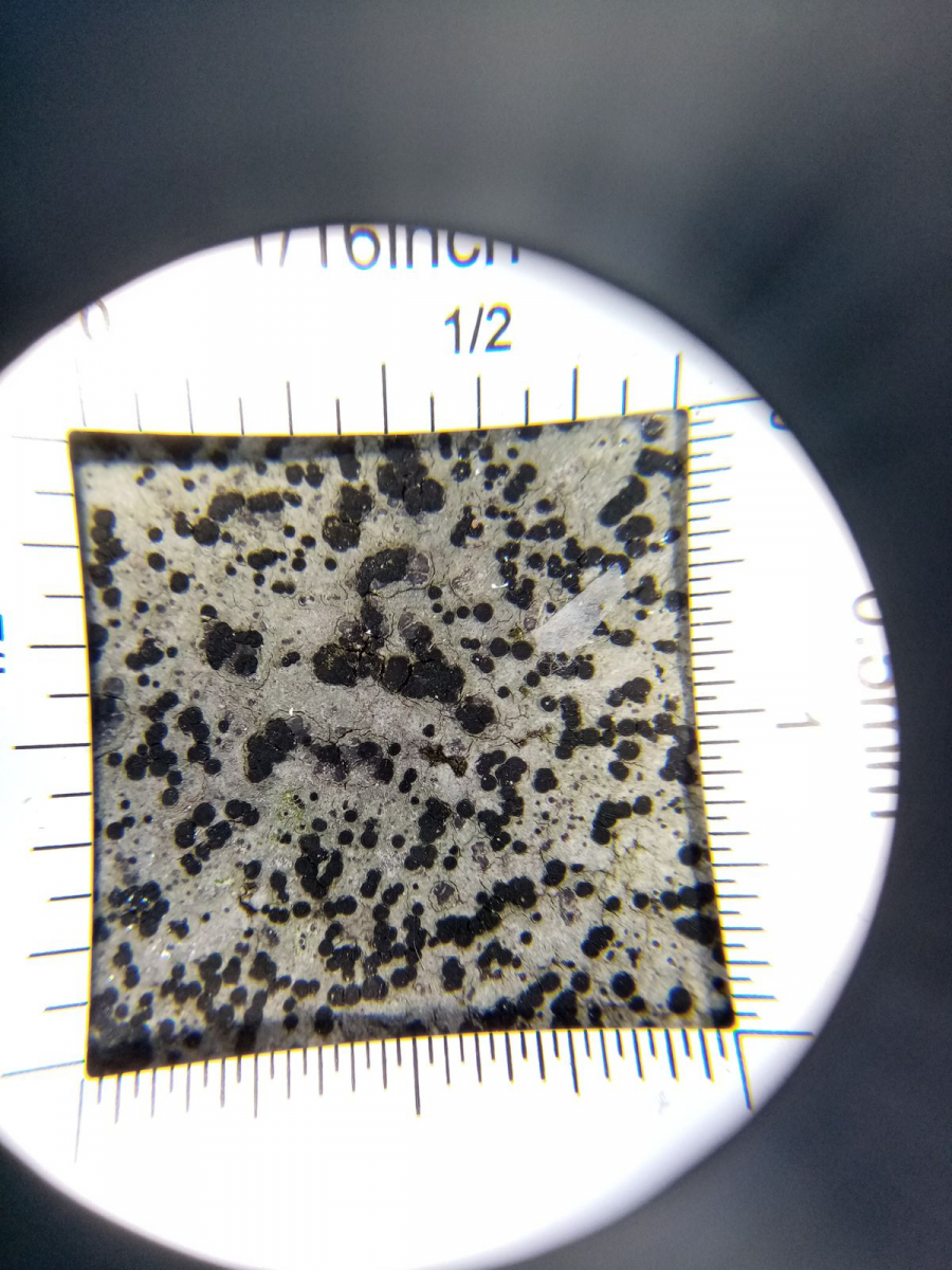 Ich hab mir dies also etwas näher angeschaut und hatte zum Glück meine Lupe mit. Es sind zwar nicht die besten Aufnahmen, weil ich bloß mein Handy dabei hatte, aber ich denke, möglicherweise ist dies Rhizocarpon geographicum - die Landkartenflechte?