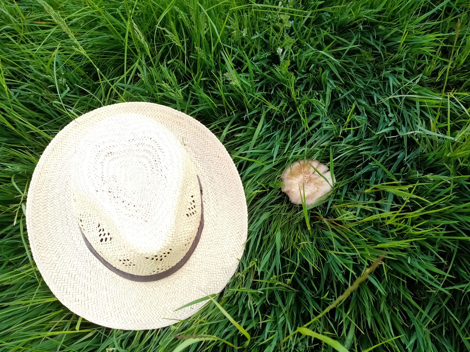 ich hab gestern einen Teil meiner Streuobstwiese abgesenst und traf dabei auf ne ganze Menge weiterer Exempl. Pluteus cervinus agg. Hier nur mal eines der Kerlchen mit meinem Gartenarbeitshut zur groben Größen-Einordnung.