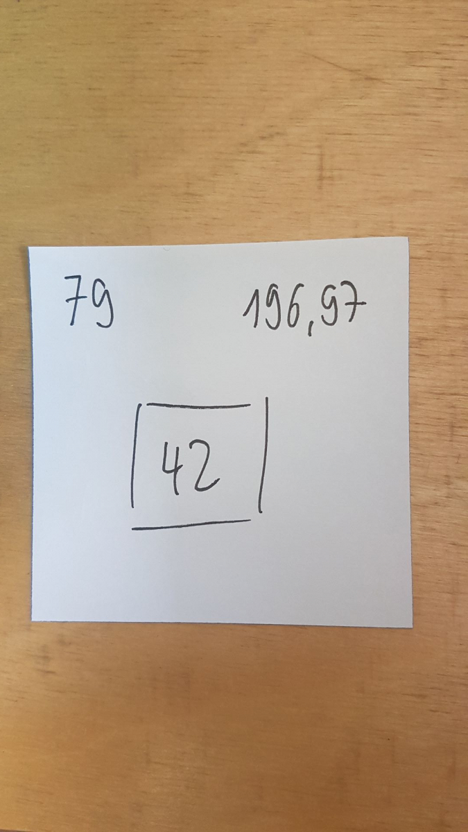 Zum ersten Hinweis/Foto hab ich jetzt mal gerechnet und komme nach 7,5 Mio. Rechenoperationen auf folgendes Ergebnis.