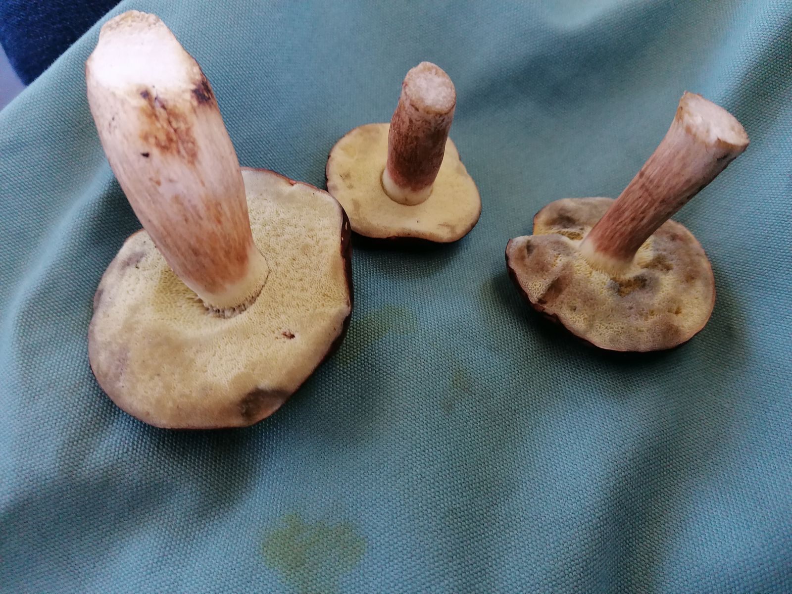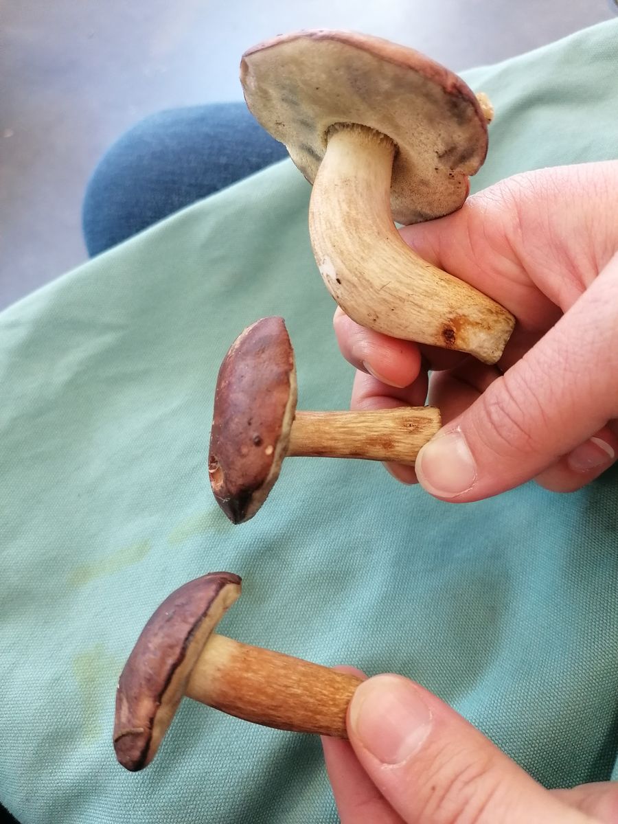 meine Freundin und ich waren heute im Umland von Berlin wandern und haben ein paar Maronenröhrlinge gefunden. Wir haben auch einige gefunden, die einen sehr dünnen Stiel haben und wir den nicht direkt zuordnen können.