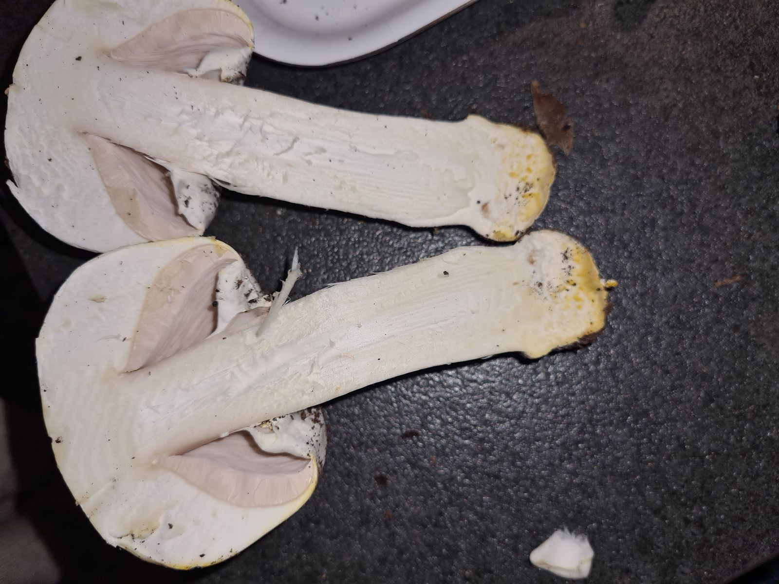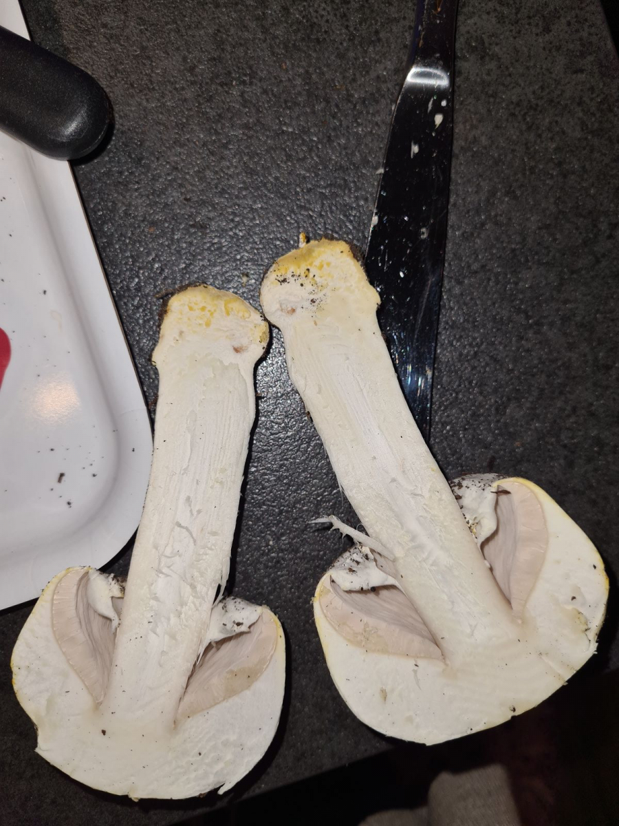 Hast du einen bestimmten Geruch feststellen können oder ein Gilben (oder röten, wobei das bei deinem Fund eher nicht der Fall sein wird) in der Stielbasis oder im (Hut-) Fleisch?