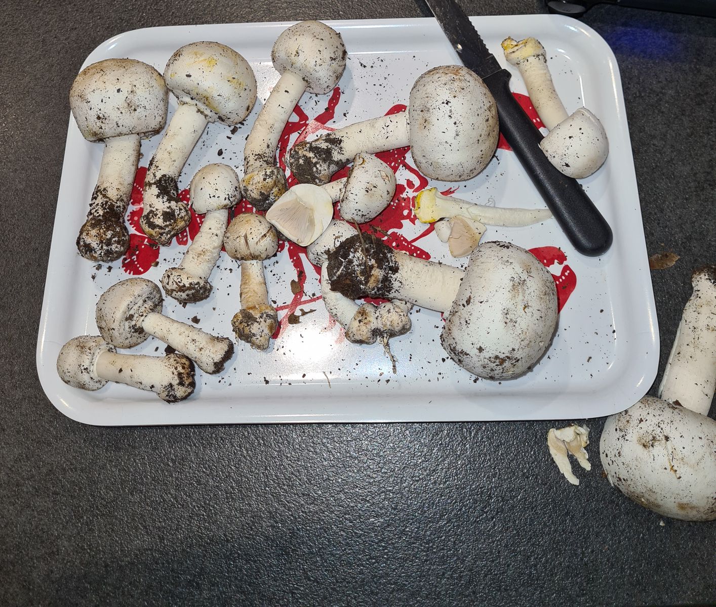 Da sind Pilze. Sie schauen echt wie Champignon aus.