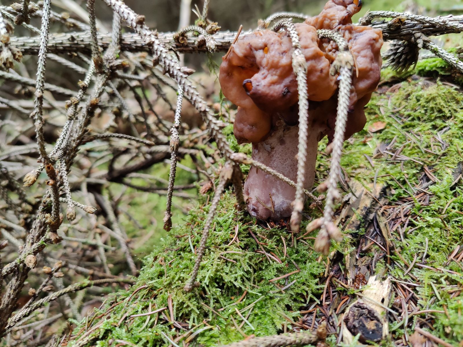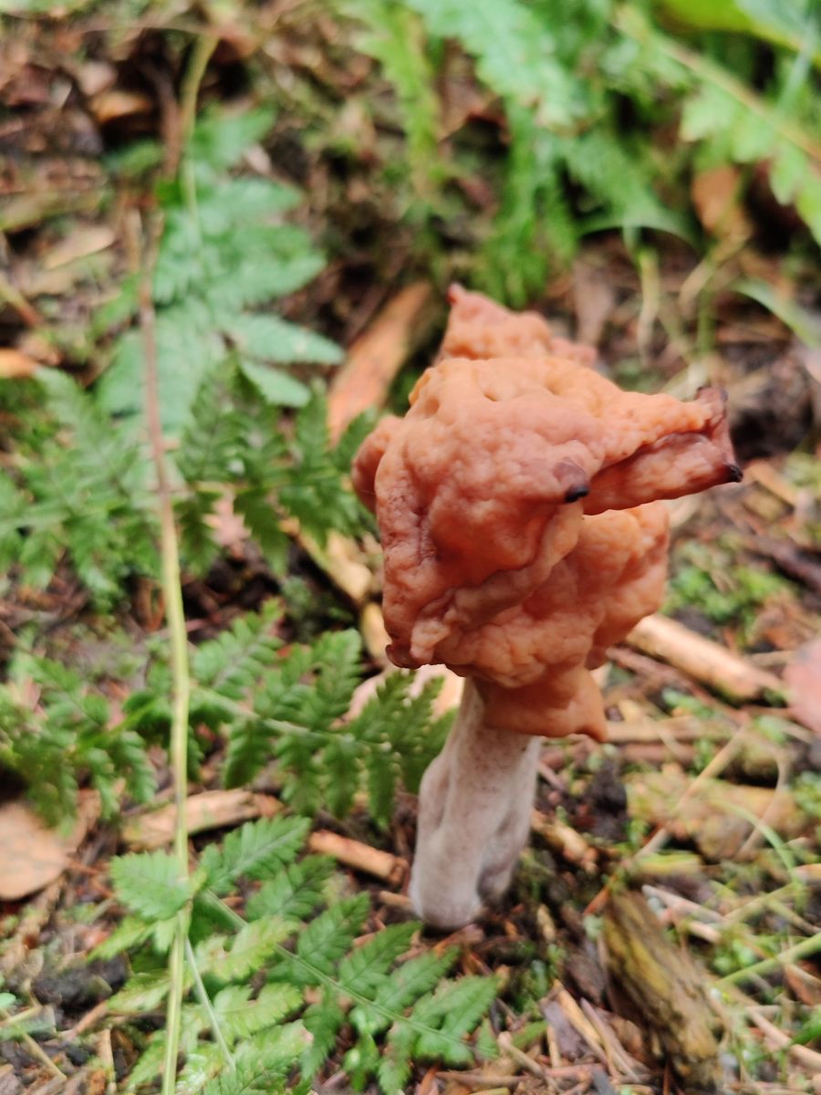 Hallo, diese schönen Pilze habe ich heute auf einem verlassenen Forstarbeitswege in einem Nadelwald entdeckt. Sie wuchsen direkt auf dem Totholz (letztes Bild) und waren 15-20cm groß. Der Stiel war Creme Rosa bis Lila, der Hut hellbraun, feste gummiartige Konsistenz. Erst habe ich mir nichts dabei gedacht aber jetzt lässt es mich nicht mehr los, und ich ärgere mich, dass ich nicht mehr Fotos oder einen Schnitt gemacht habe, Vielleicht könnt ihr mir ja helfen