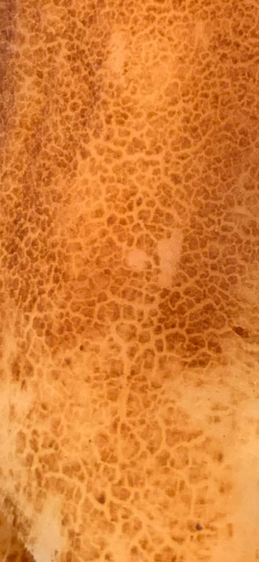 Zur Erklärung: Die hellen Stellen gehen nach unten, die dunklen Stellen heben sich nach oben ab - sonst könnte man den Eindruck haben, der Stiel wäre mit einem hellen, adrigen Netz überzogen.