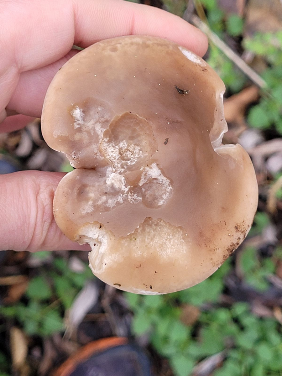 am 11. Dezember 2023 habe ich am Ufer der Pegnitz und am Rand einer Schafweide den Lilastiel-Rötelritterling gefunden.