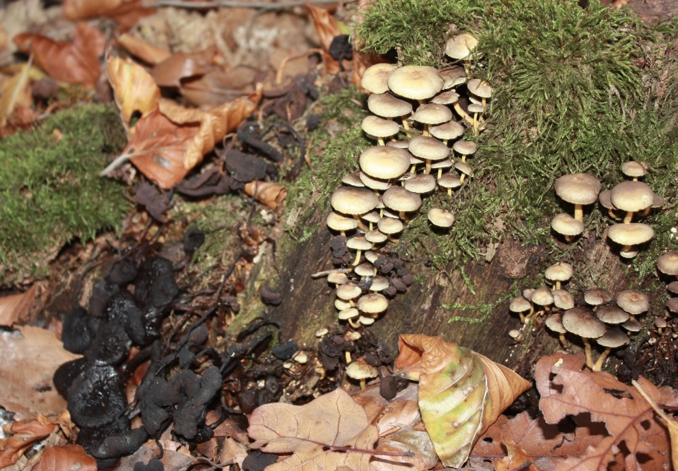 Habe geStern in einem Mischwald auf Totem Holz mit Moos diesen Pilze/Pilze gefunden, nun frage ich mich um welchen es sich handelt ich habe an eine Art Schwefelkopf, vllt dem graublättrigen. Was ich mich frage was sind das für schwarze Pilze daneben, sie waren schrumpelig und schleimig, beim anfassen gingen sie quasi direkt kaputt, meine frage nun um welchen Pilz/Pilze handelt es sich ist es der gleiche nur das die schwarze Version alt ist ?