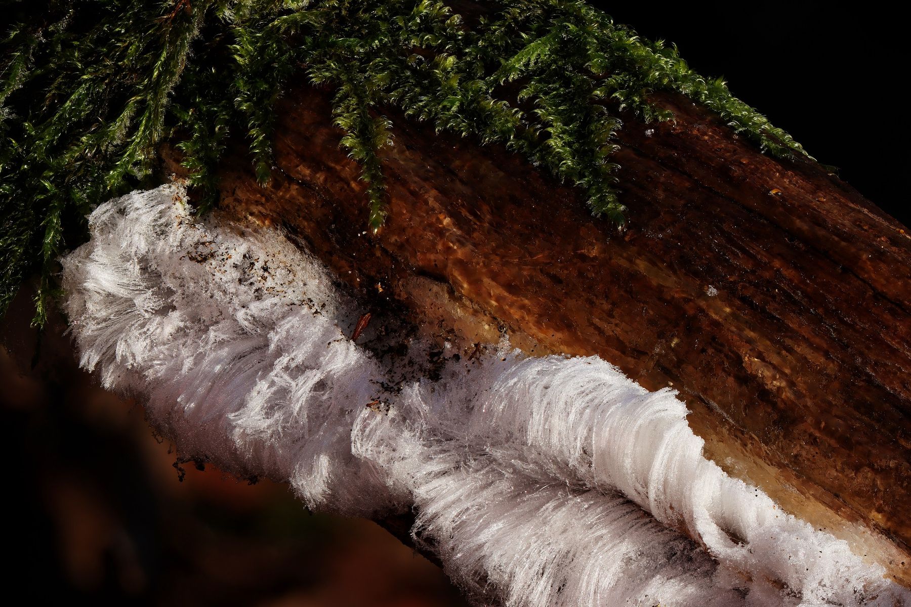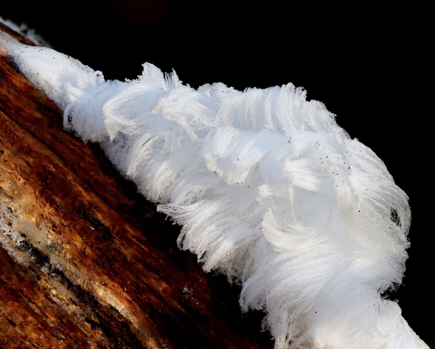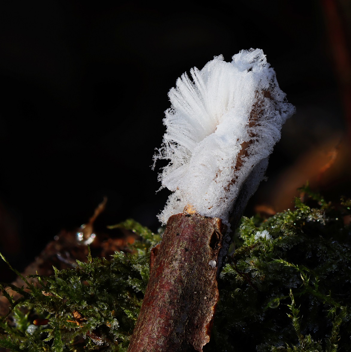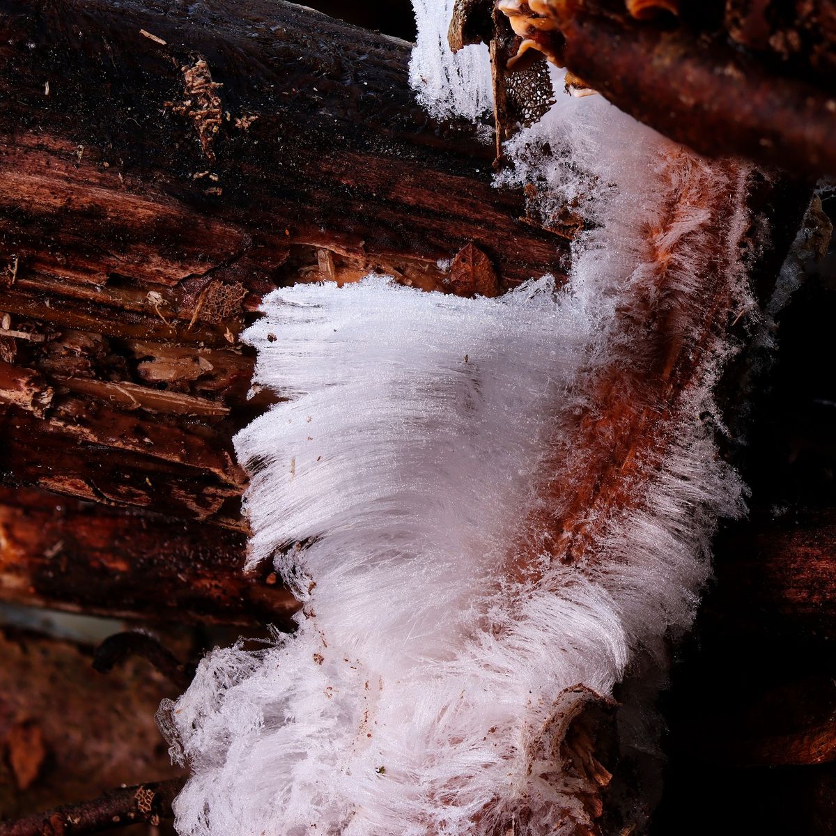 Heute war ideales Wetter für Haareis. Habe das mal vor 1 Jahr gefunden und wuste nicht was ich damit anfangen sollte. Einige Zeit später sah ich hier im Pilzforum was es ist.
