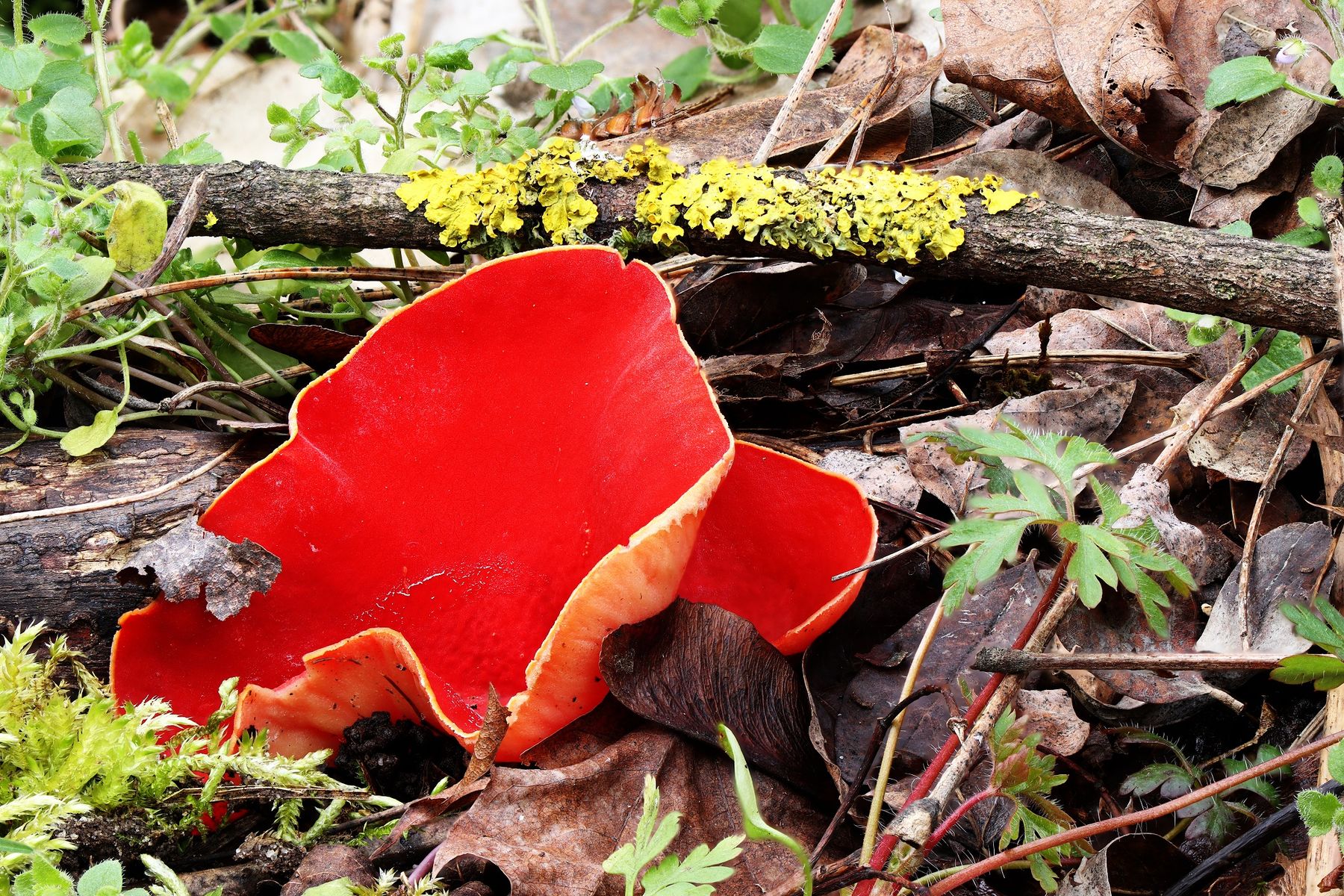 Hatte rote Becherlinge vereinzelt schon gefunden, aber an dieser Stelle waren sehr viele kleine und mittlere ...