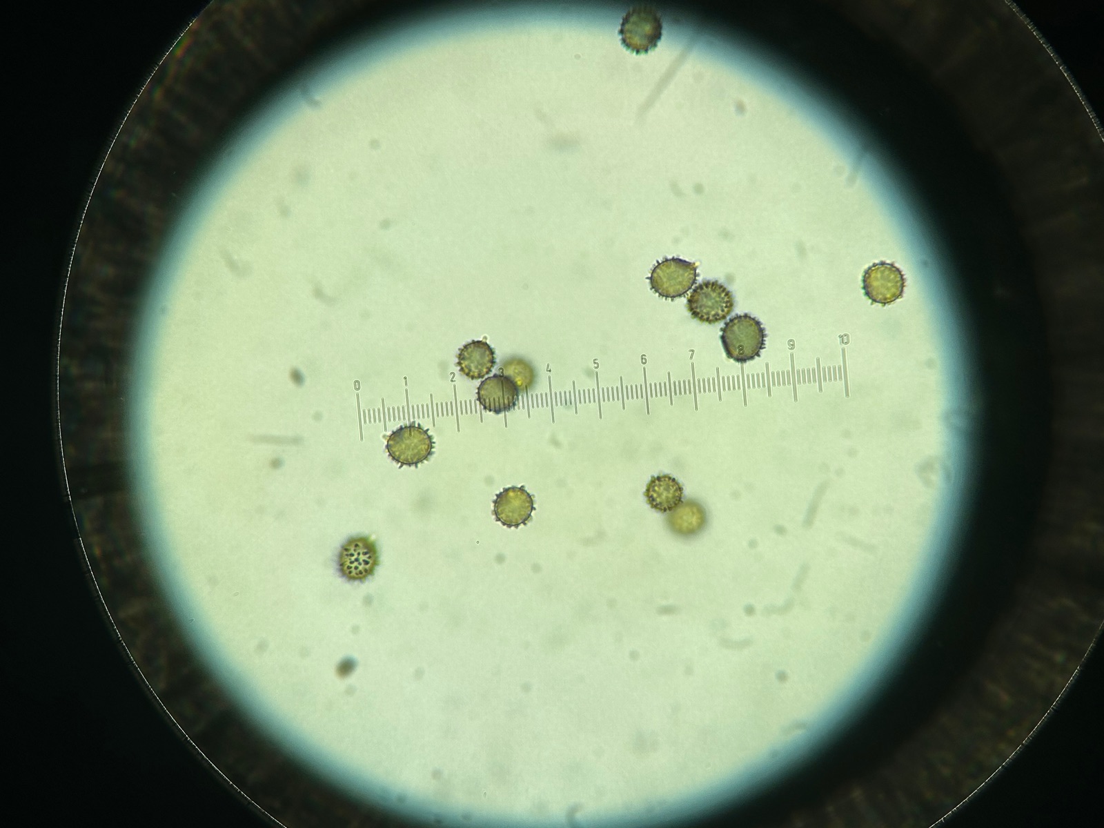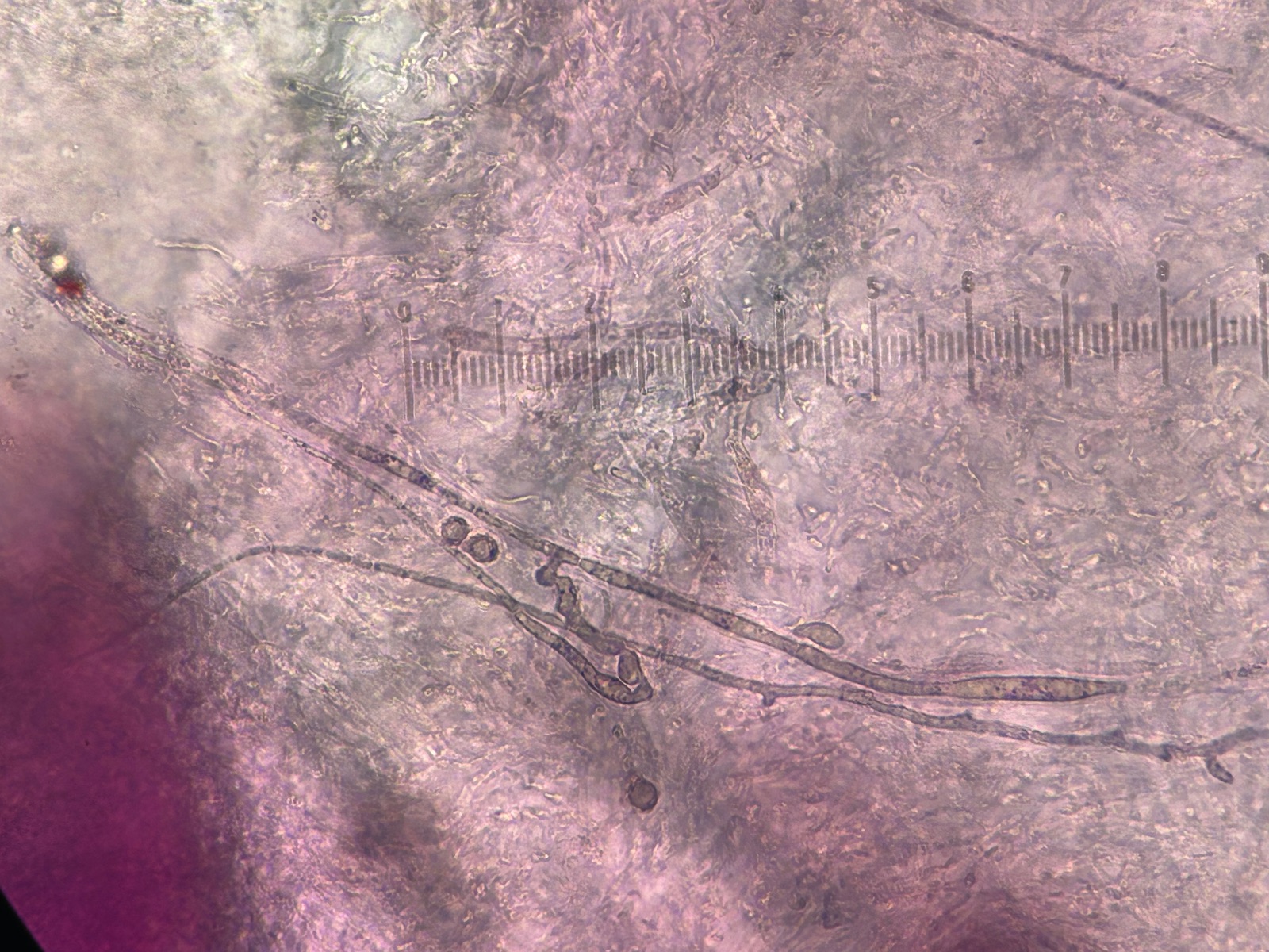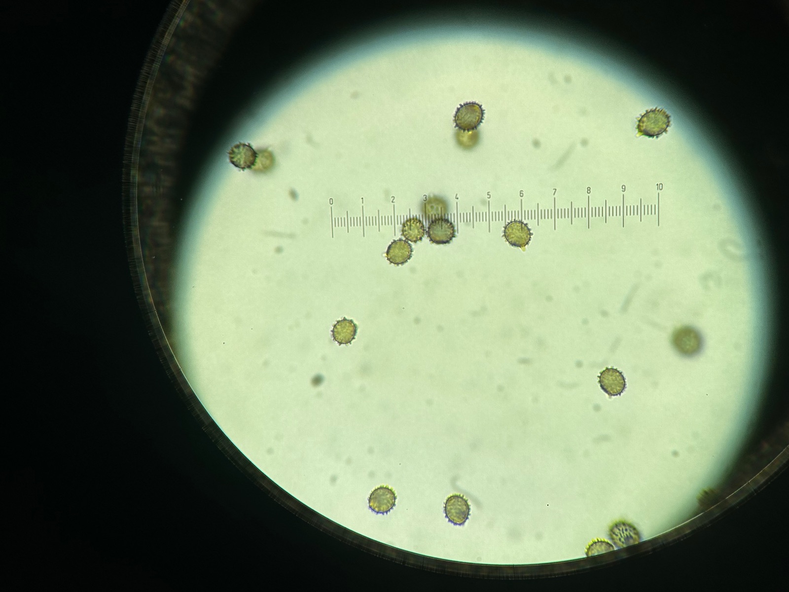 Die mikroskopischen Ergebnisse wiesen jedoch auch auf R. Grisea hin. Trotz den (verzeiht mir dafür) qualitativ dürftigen Bilder (mit dem Handy durch das Okular erstellt) konnten doch lange schmale Epikutishaare erkannt werden und das Sporenornament sollten kleine teilweise amyloide Sporen mit wenigen Verbindungslinien zusammenfliessend zu erkennen geben.