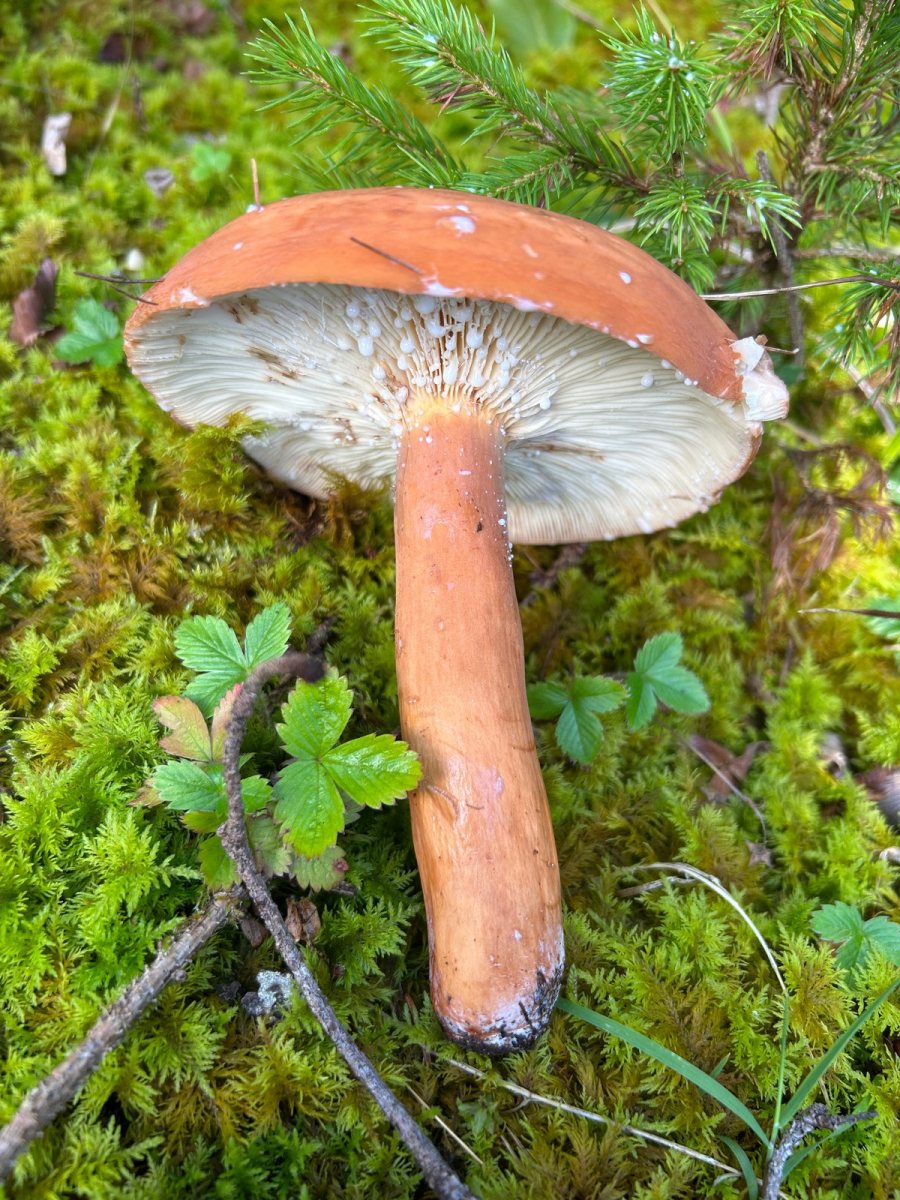 Gestern fand ich neben einer Buche (entfernt auch Fichten und Kiefer) bei strömendem Regen den folgenden Milchling: