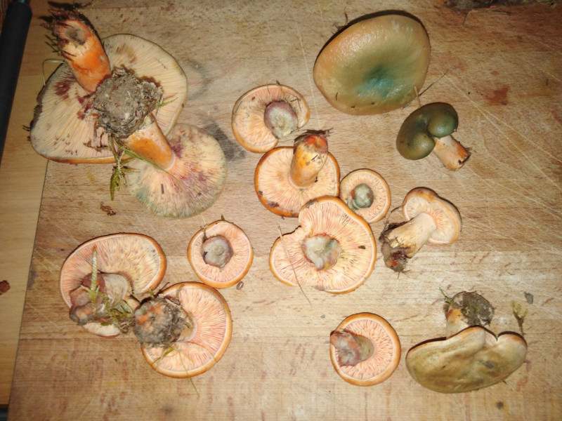 Die Reizker und die Judasohren mach ich jetzt sauber und hau sie in die Pfanne!