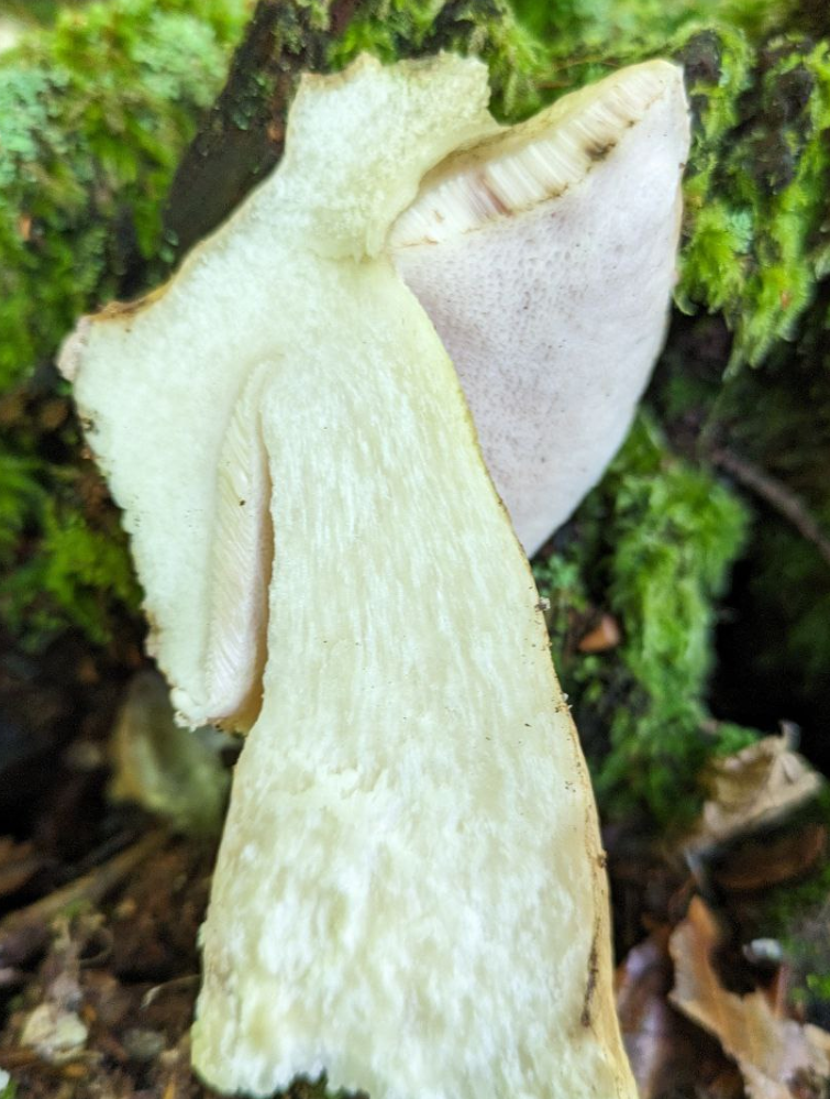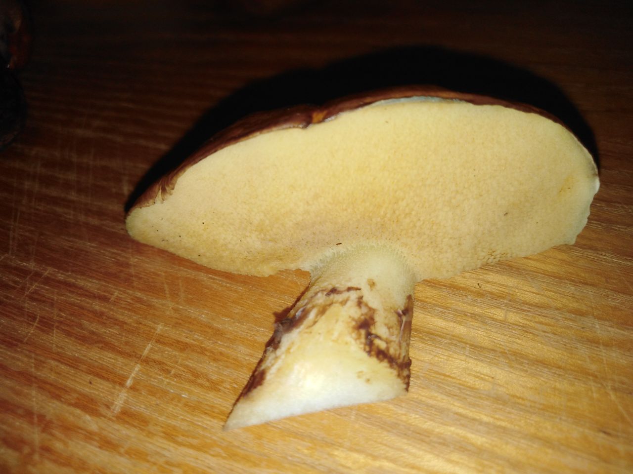 Außerdem meine ich, einen Gallenröhrling gefunden zu haben - Erstfund. Ich finde die Röhren haben einen Rosaton, und der Stiel hat ein eindeutig dunkles Netz. Vom Hut habe ich leider kein Bild, es war ein helleres braun. Auch habe ich leider keinen Geschmackstest gemacht.Ich habe dann noch an einer Reizkerstelle geschaut, konnte aber keine finden. Zu Mittag gab es trotzdem Steinpilz, aus dem Gefrierfach.