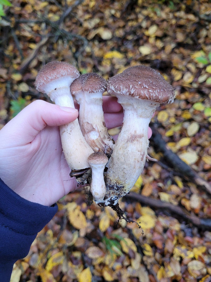 Endlich wird es bei uns etwas artenreicher - heute habe ich eine mir unbekannte Art gefunden. Vermute einen kleinen Schirmling, Lepiota. Ich hatte überlegt in Richtung Wolliggestiefelter Schirmling oder Weißer Rettichschirmling, da der Geruch eher unspezifisch und mit viel Einbildung rettichartig war. Was sagt ihr? Fundort am Wegesrand, ausschließlich Laubwald. Ich habe mal junge und alte Exemplare fotografiert.